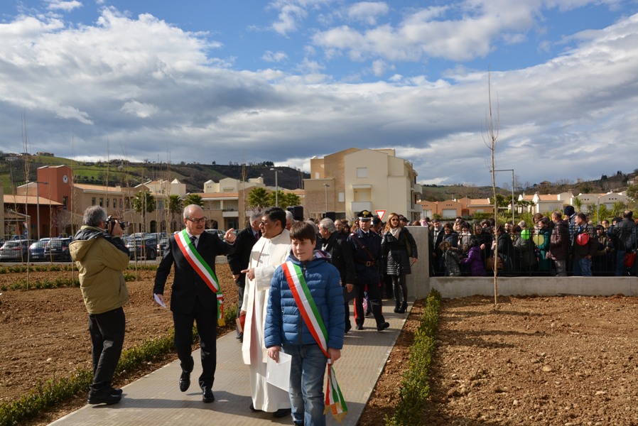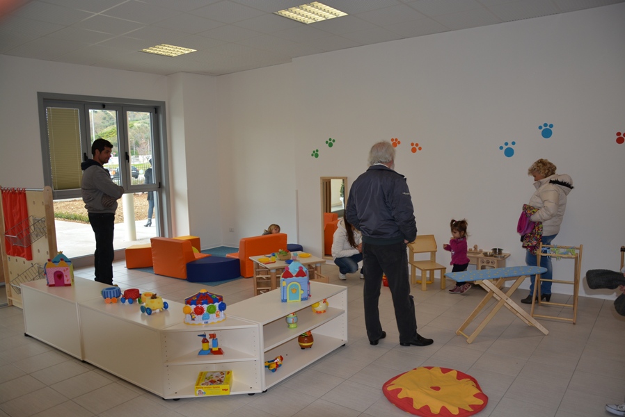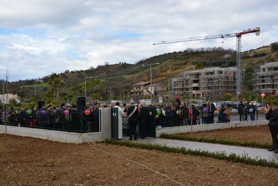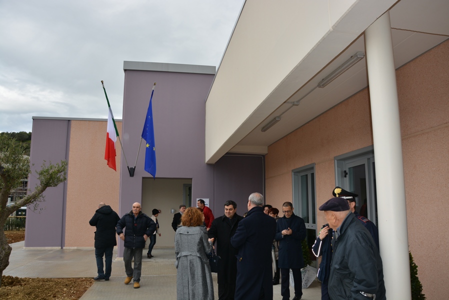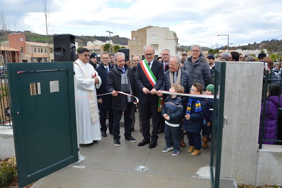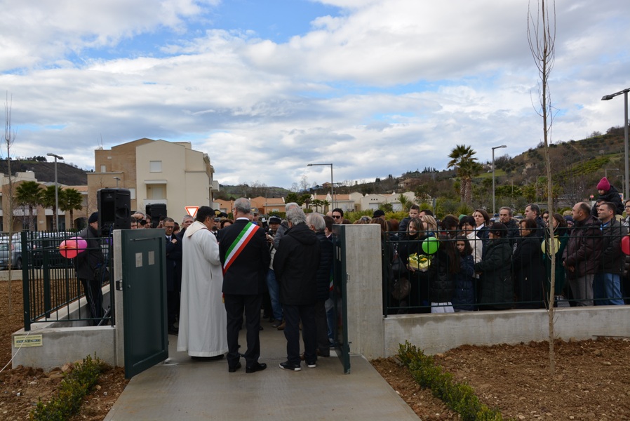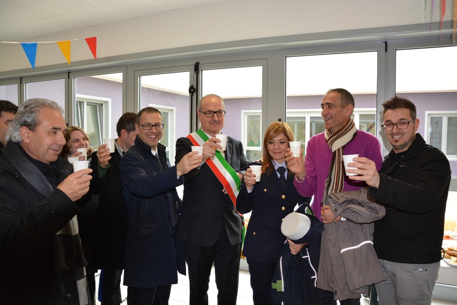 Siamo davvero contenti oggi di inaugurare questa opera con un grande spazio verde intorno, che è attrezzata anche per attività agricole anche da parte dei nostri bambini, che sarà arricchito di giochi, ma che presenta, tutt’oggi, un verde particolare, fatto di piante da frutto e da un orto botanico dove i nostri bambini potranno esercitarsi in attività proprie dei nostri padri e dei nostri nonni, quelle attività agricole che hanno fatto ricca la nostra Vallata e la nostra terra”.