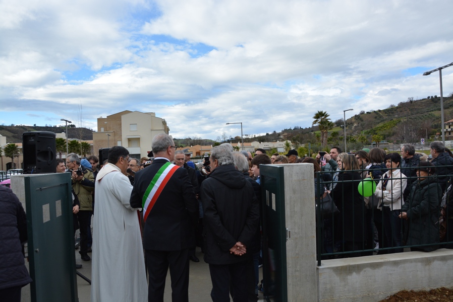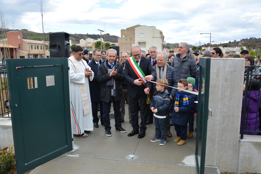 La cerimonia si è aperta con il tradizionale taglio del nastro da parte di un altrettanto emozionato e soddisfatto Sindaco di Ripatransone Prof. Remo Bruni alla presenza di numerose autorità civili (l’Onorevole Luciano Agostini, il Vice Presidente della Regione Marche Antonio Canzian, il Presidente della Provincia Piero Celani, Assessori e Consiglieri in rappresentanza di Sindaci dei Comuni limitrofi) e militari. Non potevano poi mancare Assessori e Consiglieri Comunali di Ripatransone sia attualmente in carica con il Sindaco Bruni sia coloro che lo erano con la precedente Amministrazione di Paolo D’Erasmo, il Sindaco che per primo ha avuto l’idea di questo progetto che, completato poi con il Sindaco Bruni, è stato inaugurato in una giornata di festa per l’intera Comunità di Valtesino di Ripatransone e per tutta la nostra Città.
