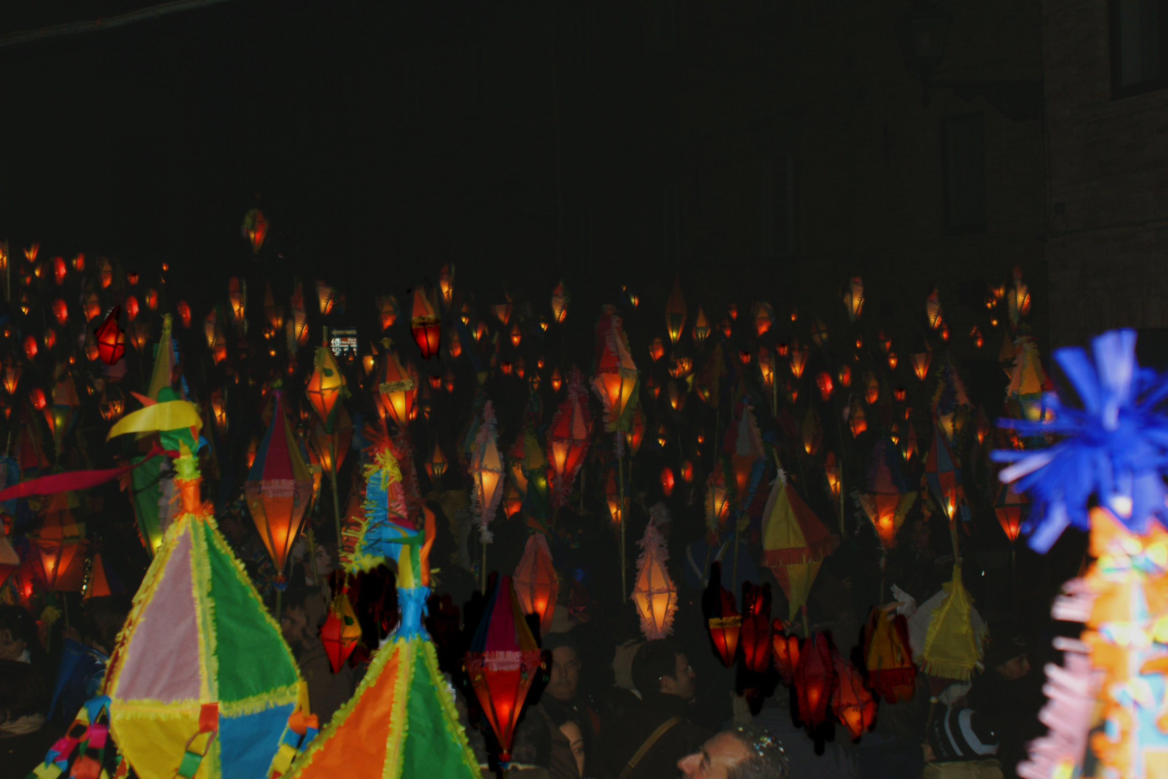 A Castignano le 19.00 di martedì sarà l’ora fatidica. A quest’ora parte la tradizionale processione de “li moccule” per le vie del borgo medievale, reso ancora più suggestivo dal fatto che le vie del paese sono illuminate solo da queste particolari torce. La spiegazione tecnica di cosa sono i moccoli è quella di lumini multicolore, con candele issate su una canna ancora verde avente quattro lati rivestiti di carta velina colorata.
