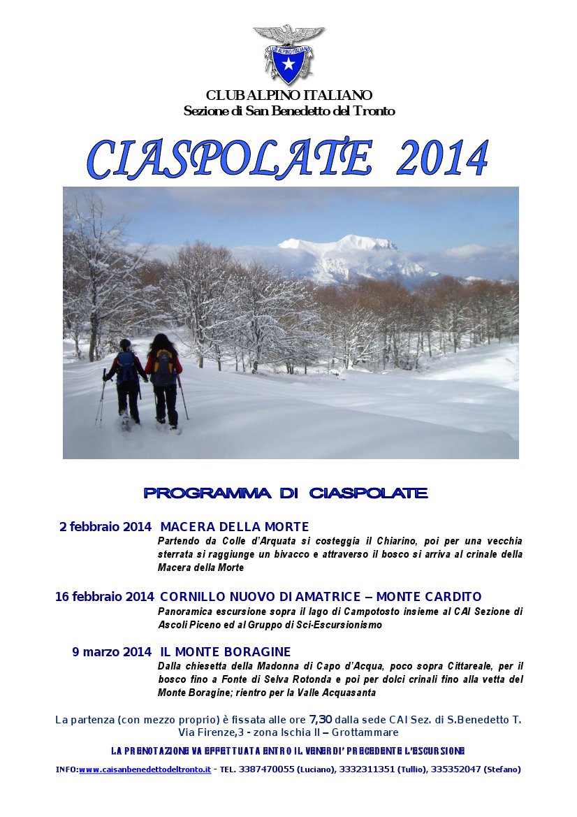 SAN BENEDETTO DEL TRONTO – Domenica prossima 9 marzo 2014 è prevista la 3° (ed ultima) uscita del Ciclo di “CIASPOLATE” con l’escursione al Monte Boragine: partendo dalla chiesetta della Madonna di Capo d’Acqua, poco sopra il paese di Cittareale, per il bosco fino a Fonte di Selva Rotonda e poi, per dolci crinali, fino alla vetta del Monte Boragine; rientro per la Valle Acquasanta.