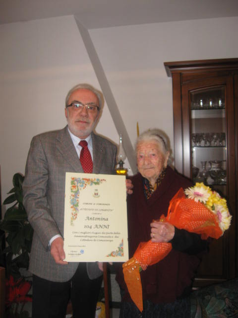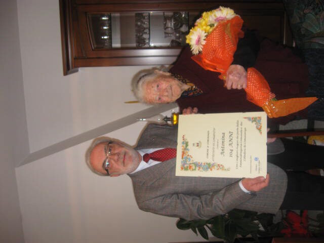 Il Sindaco Domenico Annibali, a nome di tutta la cittadinanza ha portato alla vispa nonnina un mazzo di fiori, ed un attestato di benemerenza per la sua longevità.