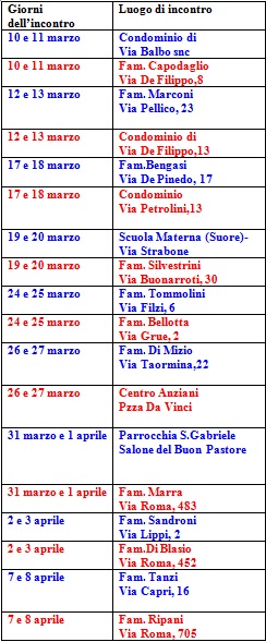 Venerdi 28 marzo: Zona S.Maria Bambina