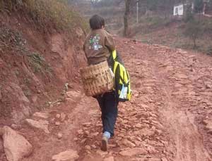 Yu Xukang, 40 anni, divorziato – la moglie lo ha lasciato quando il piccolo aveva solo tre anni – ogni mattina, all’alba, si getta sulle spalle la cesta nella quale adagia suo figlio e, tenendogli forte le braccia per evitare che cada, s’incammina verso scuola.