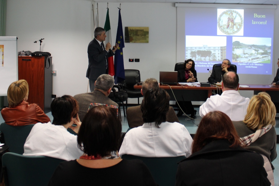 SAN BENEDETTO DEL TRONTO – Si è tenuta presso la sala convegni dell’ospedale Madonna del Soccorso l’incontro organizzato dall’AMCI (Associazione Medici Cattolici Italiani) e in particolar modo dal presidente Dottor Alfredo Fioroni. Presenti tra le autorità il nostro Vescovo Carlo Bresciani e Dottor Massimo del Moro Direttore Generale dell’Area Vasta 5 Marche.