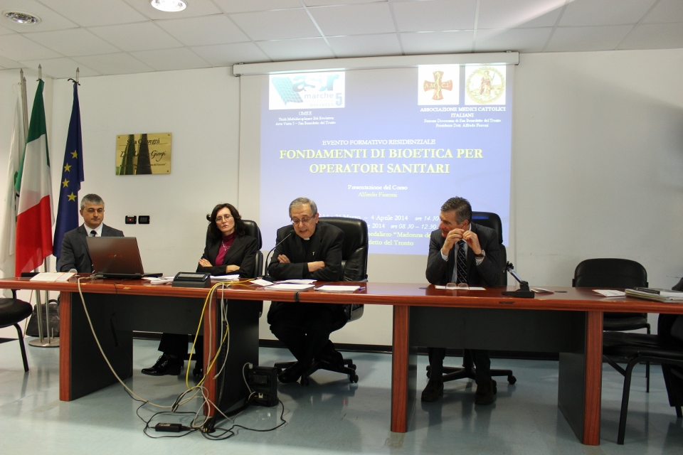 SAN BENEDETTO DEL TRONTO – Si è tenuta presso la sala convegni dell’ospedale Madonna del Soccorso l’incontro organizzato dall’AMCI (Associazione Medici Cattolici Italiani) e in particolar modo dal presidente Dottor Alfredo Fioroni. Presenti tra le autorità il nostro Vescovo Carlo Bresciani e Dottor Massimo del Moro Direttore Generale dell’Area Vasta 5 Marche.