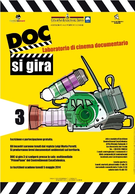 Per iscriversi a “DOC si gira 3” basta compilare l’apposito modulo scaricabile dal sito www.comunesbt.it/centrogiovani oppure da Facebook all’indirizzo facebook.com/centrogiovanisbt. L’iscrizione dovrà poi essere inviata a centrogiovani@comunesbt.it entro lunedì 5 maggio 2014.
