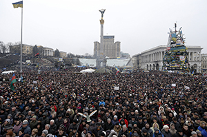 È suggestivo raccontarsi la storia attraverso le piazze che l’hanno fatta. Prima di Maidan ci fu Taksim a Istanbul e prima ancora Tahrir al Cairo, e le piazze di Tunisi e Tripoli. E Zuccotti Park con gli occupanti di Wall Street, e Tel Aviv, e Plaza Mayor con gli Indignados… Andando indietro nel tempo s’incontra quasi subito il buco nero di piazza Tienanmen, con la brutalità asiatica che sceglie di massacrare senza esitazione un’intera futura possibile classe dirigente del Paese più popoloso del mondo. Passando per le piazze sovietiche del Primo Maggio, per quelle del Sessantotto o della ghigliottina parigina si risale facilmente fino al feticcio della “agorà” ateniese, dove piazza e potere democratico pare coincidessero: in una città-stato dove i “cittadini” erano qualche centinaio, mentre tutti gli altri erano schiavi o donne.