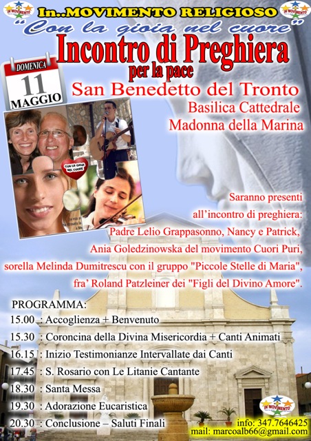 SAN BENEDETTO DEL TRONTO – Pronta la giornata di preghiera organizzata dal movimento “Con la gioia nel cuore” presso la Cattedrale Madonna della Marina per domenica 11 Maggio.