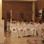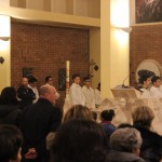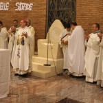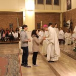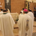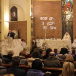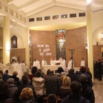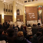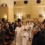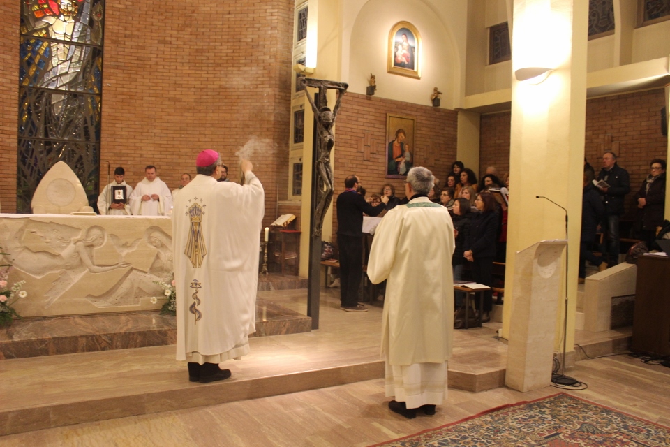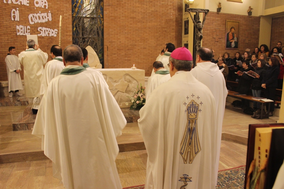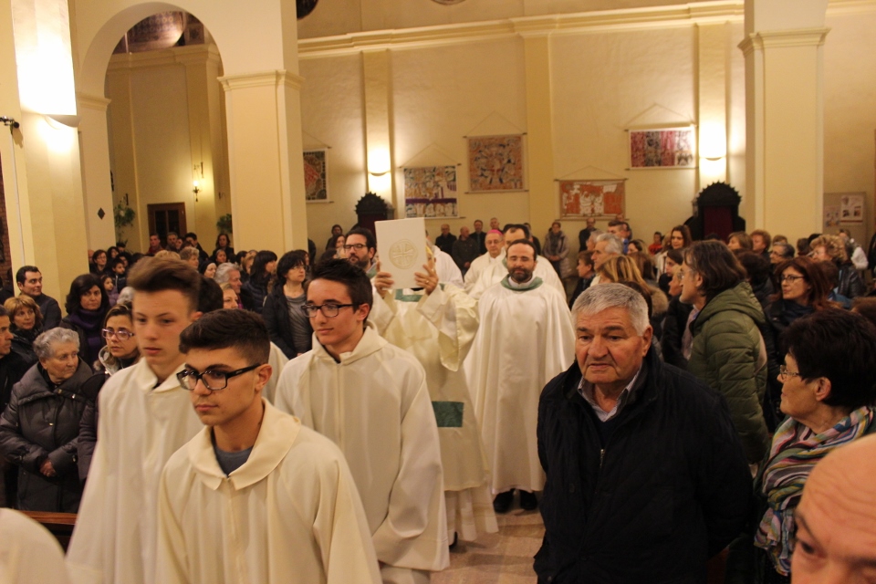 In una bella celebrazione con tanti parrocchiani e con molti sacerdoti legati anche per la loro vocazione alla parrocchia, il vescovo ha indicato Maria come madre della fede. Nell’omelia ha detto che nella fede di Maria comprendiamo l’essere cristiani, ha quindi aiutato a rileggere le letture della Parola di Dio proclamate, la prima lettura: dove Acaz non si fida di Dio, si chiude in sé, sebbene Dio gli avrebbe dato anche un segno perché Dio non abbandona. Il contrario quindi di Maria che invece si fida, abbandona i suoi progetti per la volontà del Signore. E quella del Signore, come ci mostra la lettera agli Ebrei della seconda lettura, è una volontà di bene che va accettata con un si libero. Dio chiede la nostra libera risposta e la nostra collaborazione con Lui perché ci sia la salvezza. Per accogliere l’altro non ci si può chiudere in se stessi, nelle proprie idee ma occorre metterci in ascolto e mettersi in ascolto di Dio, c’è chiesto di fidarsi della parola di Dio anche se si fa fatica a volte a capirla, ma se non si ci si fida non si può costruire un rapporto con Dio. Così come se non ci si fida gli uni degli altri come si possono costruire relazioni positive? Questo è ciò che chiede Maria: che non ci chiudiamo.