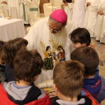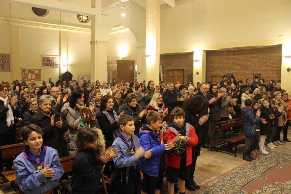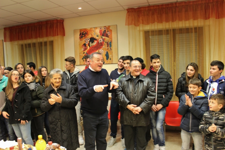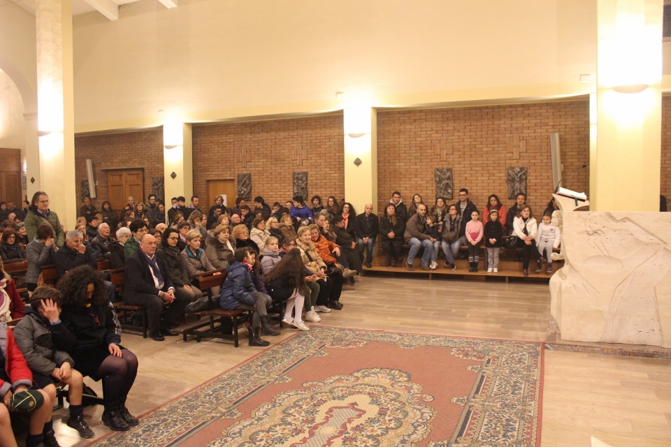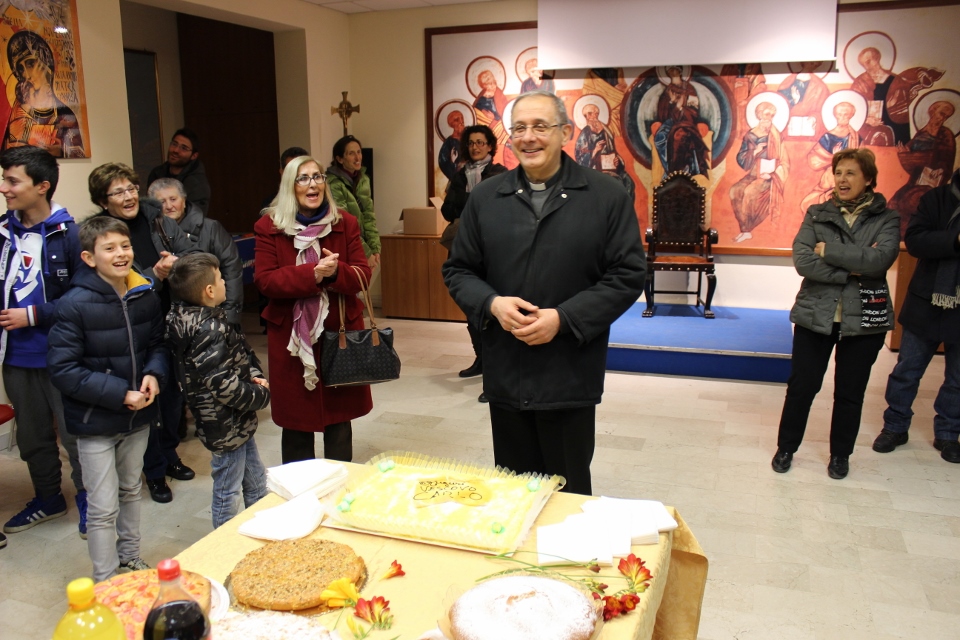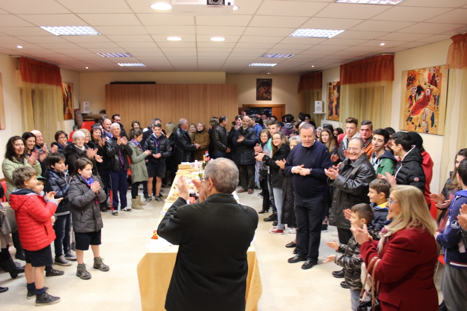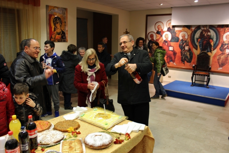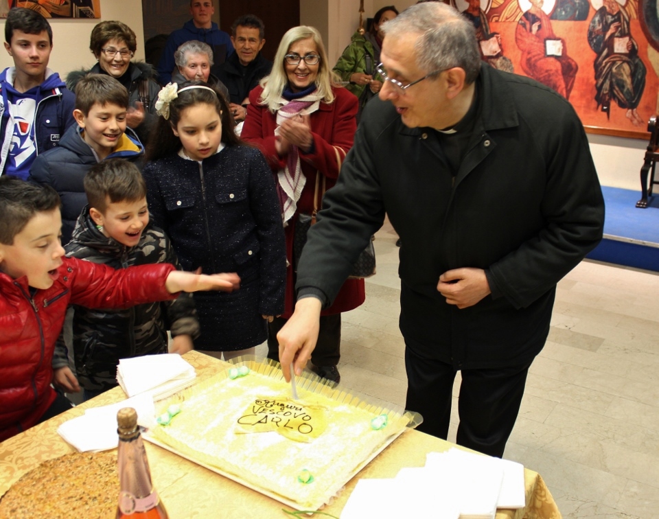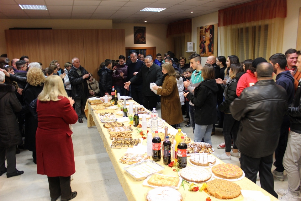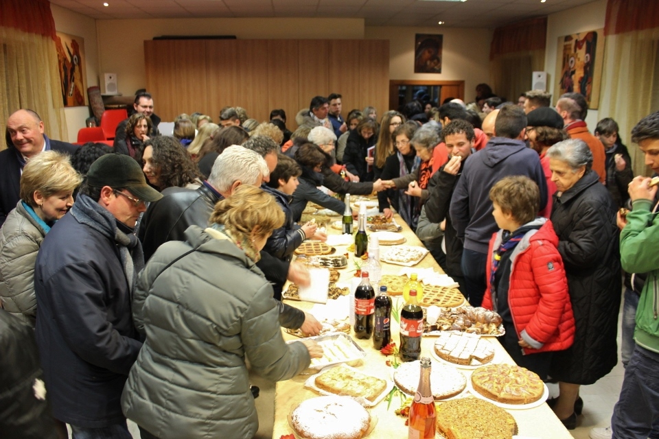 La comunità dell’Annunziata ha calorosamente ringraziato il vescovo Carlo per le sue parole e la sua presenza, con dei doni speciali: un calice frutto dell’arte di Colonnella un parrocchiano che ama scolpire, e la rappresentazione dell’opera di Masyle, una persiana con il campanile dell’Annunziata e il portone della caserma Guelfa, simboli di Porto d’Ascoli. Il vescovo Carlo ha ringraziato la comunità e chiesto di continuare a pregare per lui, perché nella preghiera insieme ci si mette in ascolto di dio. È stata anche l’occasione per fargli auguri di buon compleanno, il vescovo ha poi salutato tutti, giovani e meno giovani, grandi e piccoli con grande entusiasmo, nel salone parrocchiale con un ricco buffet di dolci.