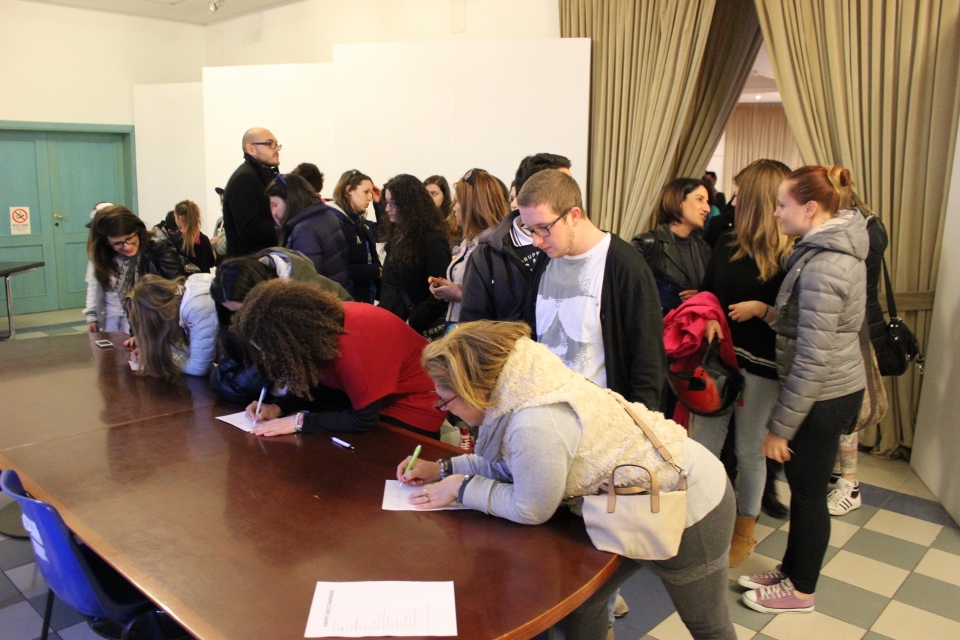 Presenti in sala tantissimi giovani e meno giovani tra cui il Sindaco di Grottammare Enrico Piergallini, il presidente del consiglio comunale Alessadra Biocca e il consigliere comunale Simone Splendiani.