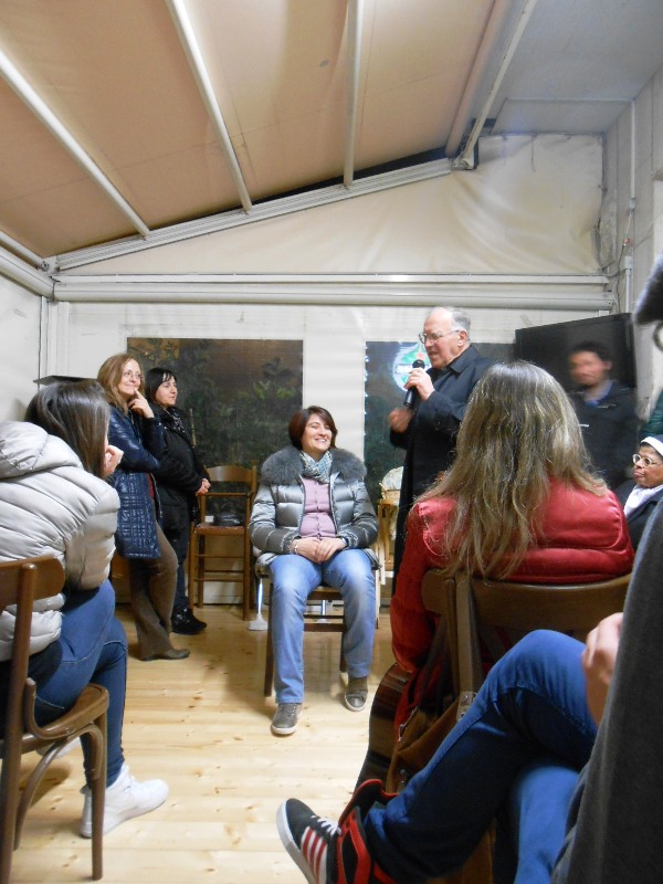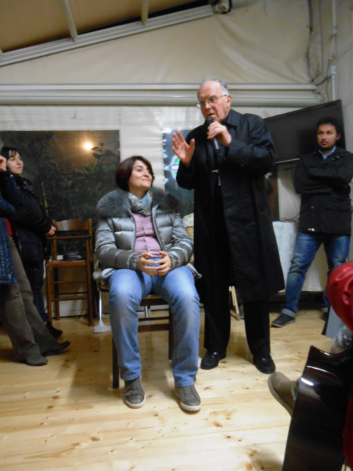 E’ poi venuto il momento della testimonianza di Francesca Piersimoni, di Cupra Marittima, una ragazza la cui testimonianza è stata particolarmente significativa visto che è non vedente fin da quando aveva 15 anni:”All’età di 11 anni mi venne fatta la diagnosi di glaucoma, che mi ha portato alla cecità nel giro di 4 anni. Ho dovuto imparare metodologie nuove come il braille ecc… Ho frequentato l’Istituto MagistraIe di Ripatransone, i primi tempi sono stati un po’ duri, ma alla fine sono arrivata al diploma. A 18 anni ho avuto una crisi interiore dovuta al fatto che i miei amici iniziavano a prendere la patente, le mie amiche il primo ragazzo e altre cose che io a causa di questo handicap non potevo fare. Spesso mi chiudevo in camera, e pregavo il Signore chiedendogli che cosa ci stessi a fare in questo mondo, perché dovessi soffrire così, e il fatto che ero molto chiusa e timida peggiorava la situazione. Qualcuno, una donna che mi faceva da sostegno a casa per leggere i libri, si è accorse di questa mia sofferenza interiore e, un giorno, disse ad un giovane prete di allora “Ma voi che parlate di questo Dio, ma vi siete accorti che c’è una ragazza che sta soffrendo? Perché non fate qualcosa?”. Fu così che questo giovane prete iniziò a farmi invitare dai ragazzi che frequentavano la parrocchia, ma io rifiutavo gli inviti. Una domenica sera, dopo la messa dove ero andata con i miei genitori, il prete in questione mi si avvicinò per chiedermi se fosse potuto venire a trovarmi, a casa, con alcuni ragazzi della parrocchia, ed io accettai. Iniziò così una bellissima amicizia, questi ragazzi si interessavano a me anche se io non avevo qualcosa da dare a loro, condividevamo insieme molte esperienze soprattutto quella della fede. In quel periodo capii che questo Dio mi si era fatto vicino attraverso queste persone; io avevo bisogno di fare le esperienze che facevano i ragazzi della mia età: una serata in pizzeria, i giri in vespa, il cinema, una birretta in compagnia. Ad un certo punto il Signore decise di farmi fare un salto di qualità, partecipavo alle attività in parrocchia, avevo iniziato a lavorare e a un certo punto le mie due colleghe preferite furono trasferite, la mia più cara amica partì per l’università e si fidanzò, mio padre ebbe dei problemi di salute, insomma mi sono vista togliere tutte le mie certezze umane ed entrai di nuovo in crisi, il Signore mi aveva tolto tutto, ma lo aveva fatto per farmi capire che tutto quello che conta non sono le cose umane ma il legame intimo con Lui, la confidenza che ti da la certezza che Lui c’è sempre e ti da una gioia interiore che va aldilà delle difficoltà, che ti da un approccio diverso nell’affrontare i problemi che capitano. In questa società, dove contano solo la bellezza, i soldi e il successo, questa certezza mi rincuora, mi fa felice. Il vangelo di questa sera parla del vedere e del non vedere e a tale proposito mi viene in mente un piccolo aneddoto accaduto mentre mi trovavo a studiare a Bologna, dove ho avuto la fortuna di partecipare ad un corso di orientamento e mobilità che insegna a andare in giro da soli con il bastone bianco: un giorno, l’istruttore mi disse che dovevo andare in stazione portando con me un altro ragazzo, cosa non facile; lungo il percorso, ad un grande incrocio, il vigile bloccò il traffico per farci attraversare e, mentre lo stavamo facendo, a un certo punto sentii alle spalle i tacchi di una donna che correva per attraversare anche lei, passandomi vicina si inciampò con il mio bastone e cadde per terra; il ragazzo che era con me si mise a ridere, il vigile arrivò in soccorso, e la donna disse “Scusate ragazzi, ma non vi ho proprio visto!”. Alla sera, ripensando al fatto mi dissi “Ma come ha fatto a non vederci, eravamo in due, con il bastone!” e allora capii che dovevo imparare ad apprezzare quello che ho, e questo è quello che dobbiamo imparare a fare tutti, abbiamo tante doti ma spesso ci lasciamo abbindolare da quello che ci trasmettono gli altri, la pubblicità, la TV, vorremmo sempre di più e invece il di più sta già dentro di noi. Dentro di noi c’è una potenzialità che se elevata “alla Cristo”, se vissuta in Cristo può farci dare tanto, può farci rendere felici chi ci sta accanto”