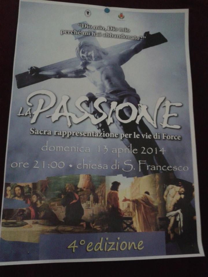 Per il quarto anno consecutivo la comunità forcese, guidata dal Comitato della Passione Vivente, si mette all’opera per inscenare la “Passione vivente”. La riproposizione dei momenti salienti degli ultimi giorni di Gesù, avverrà Domenica delle Palme alle ore 21 partendo dalla Chiesa di San Francesco per il centro storico. In caso di pioggia la manifestazione si svolgerà interamente in Chiesa.