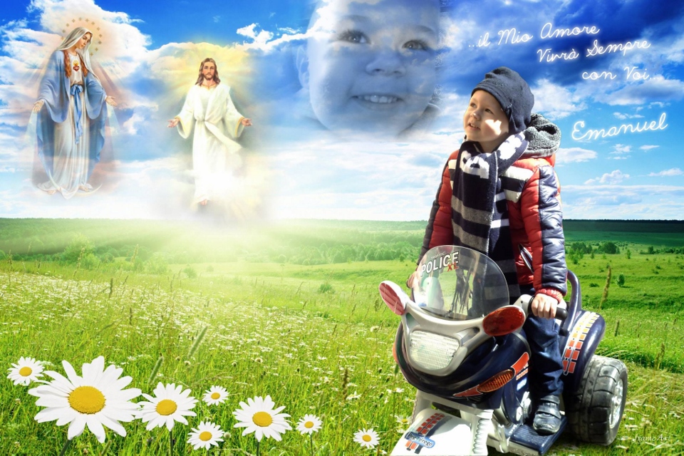 E’ l’anima candida di Emanuel Tiengo, un bimbo così dolce e con gli occhi così blu, che nel blu si fonde. Emanuel, un nome che si è scelto per testimoniare con la sua vita e la sua morte che quel Dio che lo ha amato, è con noi.
