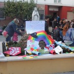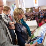 A conclusione della celebrazione, i genitori dei bambini dell’asilo hanno omaggiato Monia, Gilberto ed il piccolo Denis di un’immagine emblematica della festa: il ricordo vivo e presente di Emanuel che è felice insieme a Gesù e Maria in un arcobaleno, a cavallo della sua moto da poliziotto.