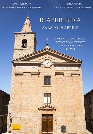 La confraternita “Compagnia del S. S. Sacramento” proprietaria della chiesa, insieme al suo parroco Don Dino Straccia, si sono subito adoperati per cercare riaprire la Chiesa di Santa Caterina nel più breve tempo possibile non senza difficoltà.
