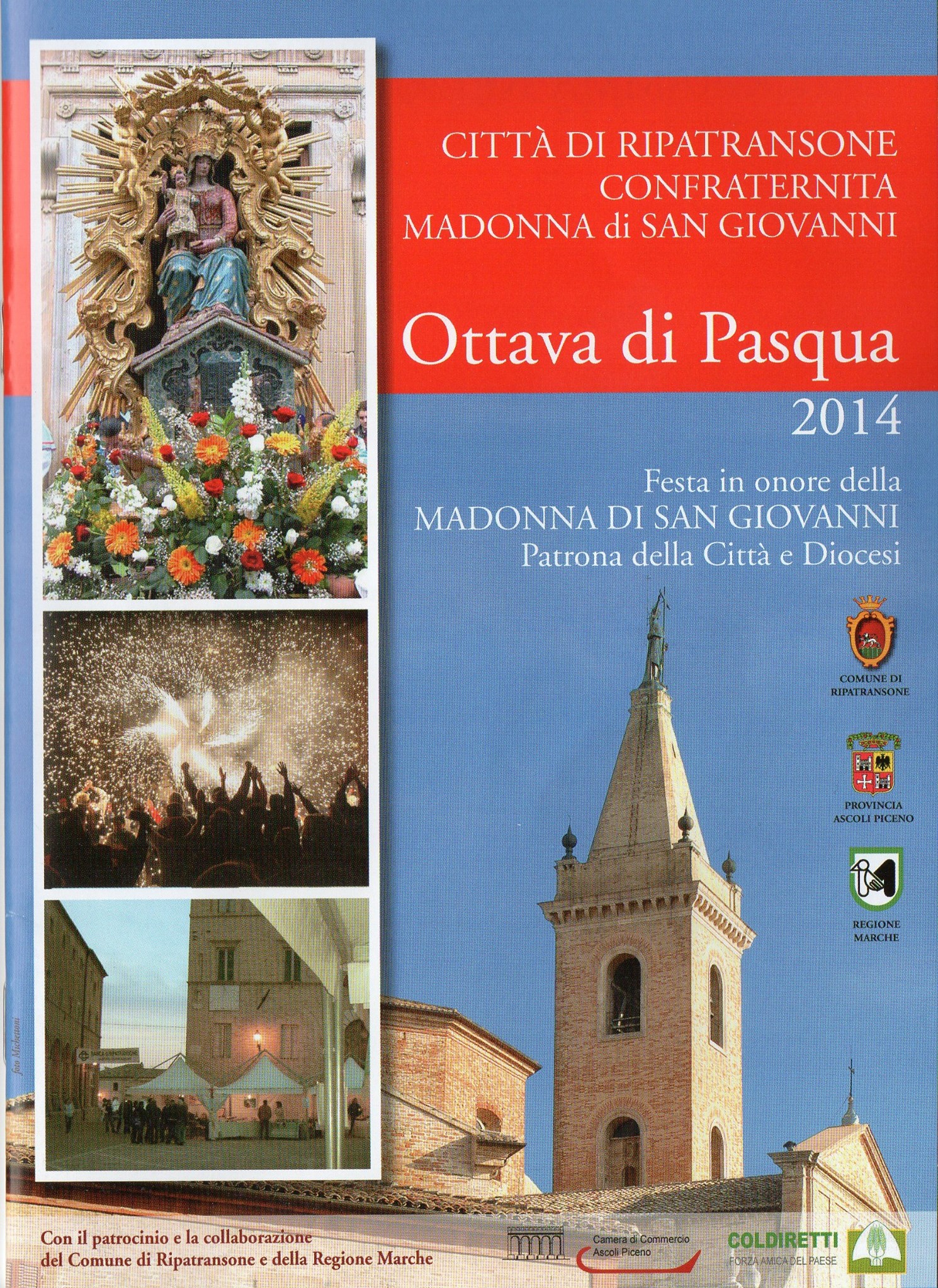Le festività culmineranno nella giornata di Domenica in Albis 27 Aprile Ottava di Pasqua e Festa della Madonna di San Giovanni patrona della città e Diocesi che si aprirà alle 9:30 con la Santa Messa in Duomo celebrata dal vice-parroco di Ripatransone Don Gian Luca Rosati e alle 11:00 con Santa Messa Pontificale di S.E.R. Mons. Carlo Bresciani; la celebrazione sarà allietata dai canti della Corale “Madonna di San Giovanni” di Ripatransone. A seguire, la Benedizione del “Cavallo di Fuoco” sul sagrato del Duomo. Alle 19:00 la Solenne Processione con il Simulacro Taumaturgico della Madonna di San