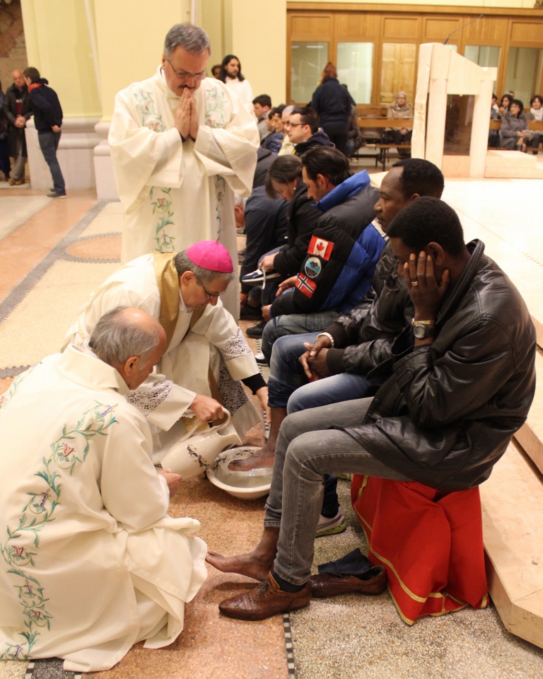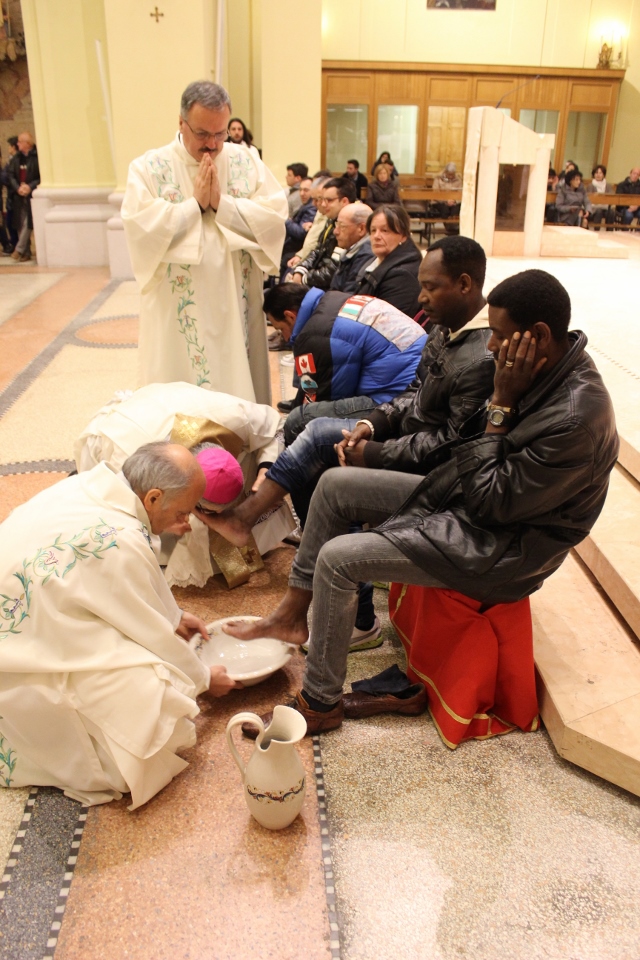 Tu ci ami fino a piegarti per lavarci i piedi come fa l’ultimo degli schiavi, ci ami anche se noi non ti amiamo, tu ci ami fino alla morte, tu ci ami fino a darci il tuo corpo e il tuo sangue come cibo per la nostra vita.