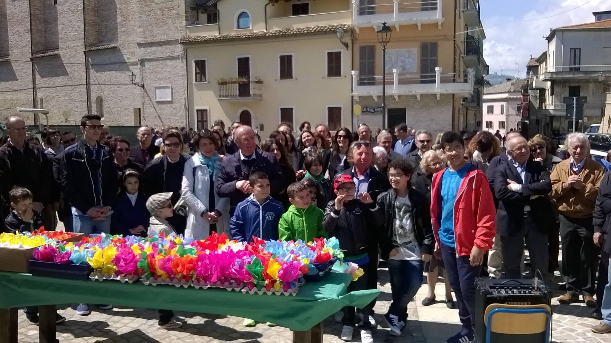 Di solito si fa in famiglia, a tavola, ma quest’anno il Comitato di quartiere, l’Associazione Amici del Paese alto, la Parrocchia S. Benedetto Martire, dopo la Santa Messa di Pasqua, ha messo a disposizione sotto la Torre più di cinquecento uova sode (con tradizionale benedizione del parroco) per far divertire grandi e piccini.