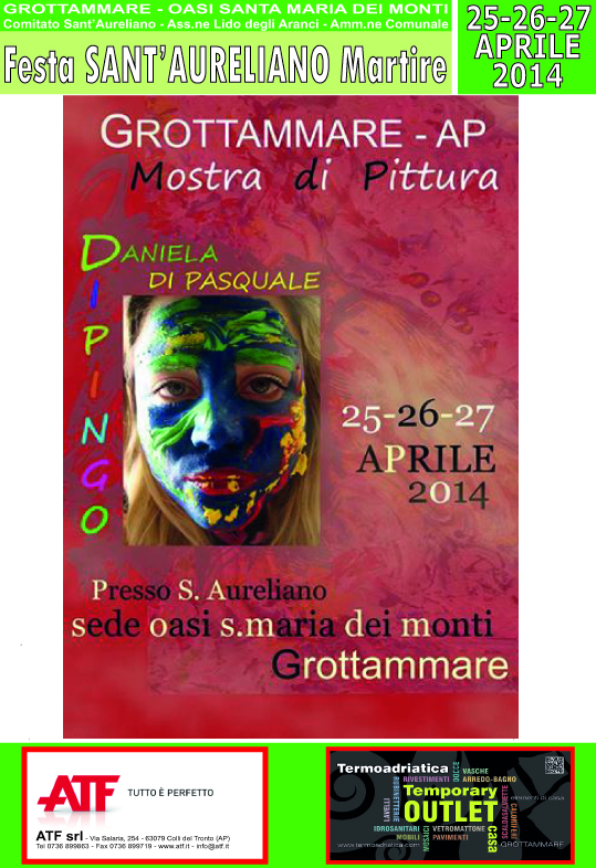 GROTTAMMARE – Quest’anno durante i tre giorni della festa di Sant’Aureliano sarà presente presso il chiostro del convento la mostra dell’artista emergente Daniela Di Pasquale che nonostante la giovanissima età ha già dimostrato tutta la sua bravura sia in Italia che all’estero.