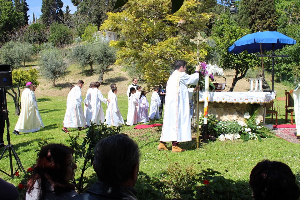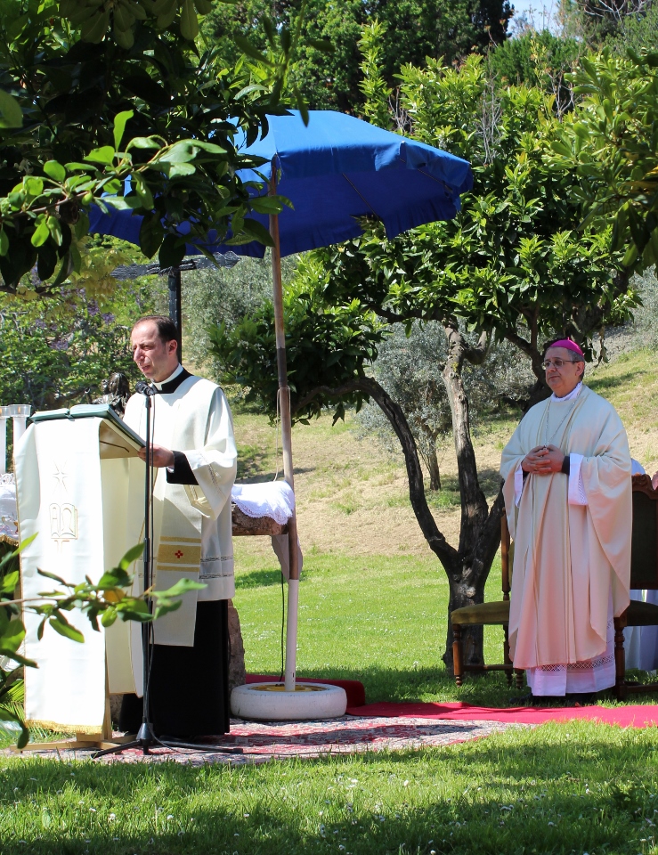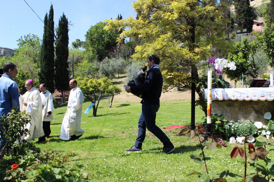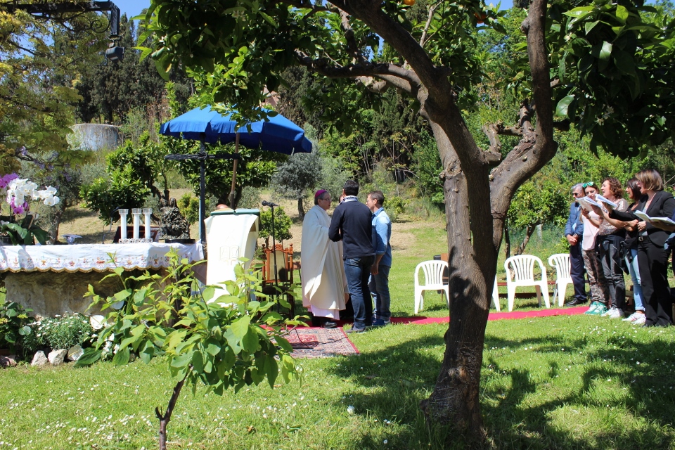 La messa è continuata in un suggestivo paesaggio primaverile, allietata dal canto naturale degli uccellini di casa San Francesco e dal valido canto liturgico della corale della Gran Madre di Dio.