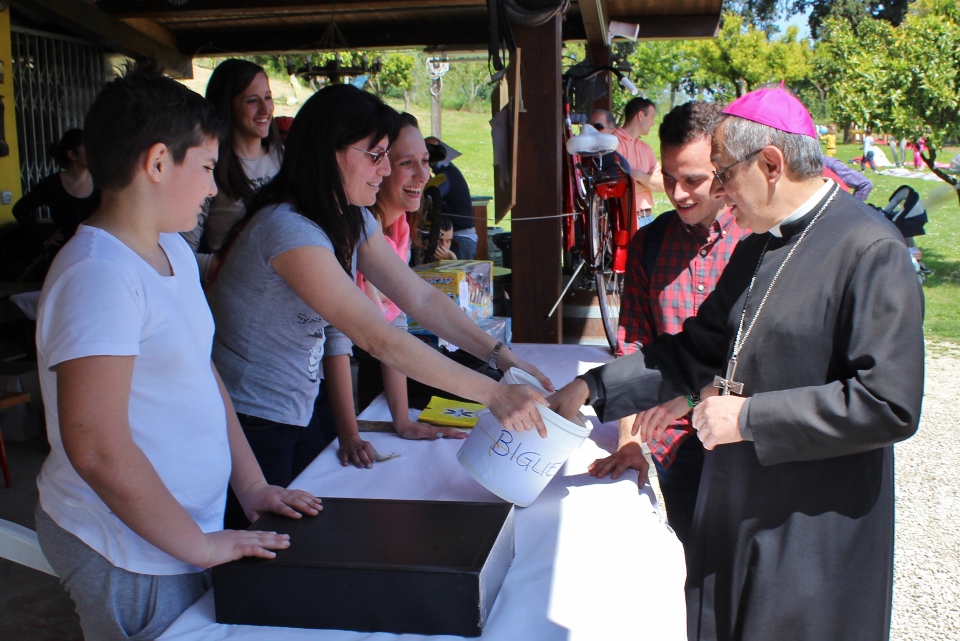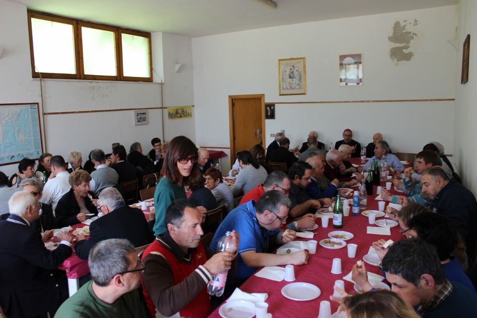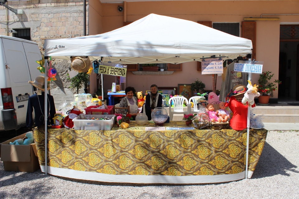Dopo la messa c’è stato un ricco pranzo preparato dalla mitica cuoca Aldina ed è stato un bel momento vissuto nella gioia fraterna tra tutti coloro che si sono impegnati con generosità alla buona riuscita di questa festa. Molti sono stati i fedeli che hanno reso omaggio nella chiesetta alla statua di San Francesco di Paola, ho visto anche molti bambini accompagnati da genitori e nonni che hanno pregato il santo protettore dei marinai. Nonostante il tempo incerto con un sole che faceva a nascondino con le nuvole, c’era gente che ha fatto pic-nic, giocato a pallone e si divertiva sul prato di casa San Francesco. I Tipi Loschi hanno animato i giochi, come quello di lanciare con pecisione il ferro di cavallo o come quello di scegliere il numero della cassetta dove si rifugiava il coniglio che è stato l’attrazione dei bambini. Due ricche pesce di Beneficenza sia della Caritas Diocesana, sia della Compagnia dei Tipi Loschi hanno attirato l’attenzione di molti che sono venuti alla festa.