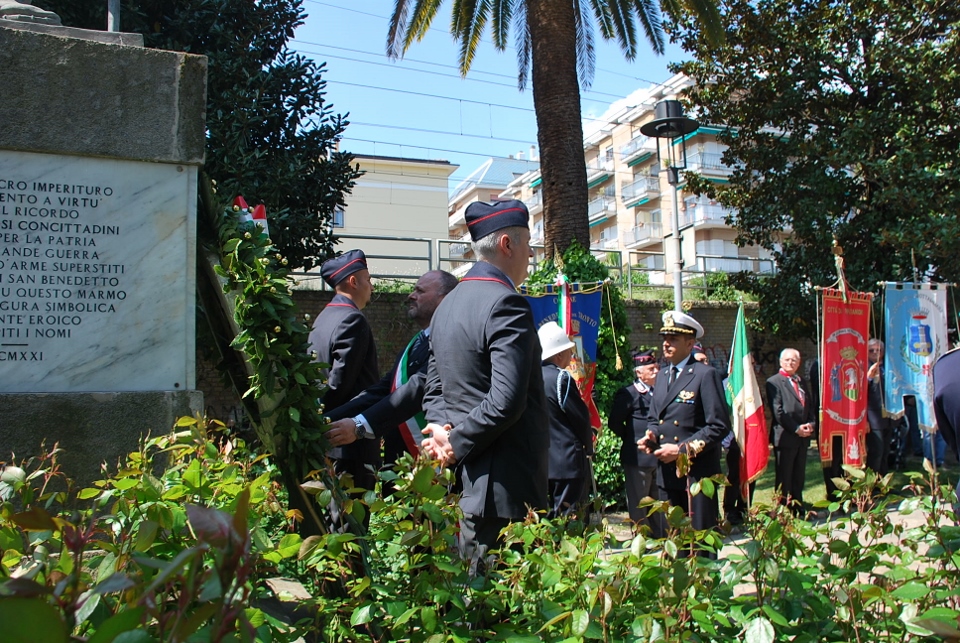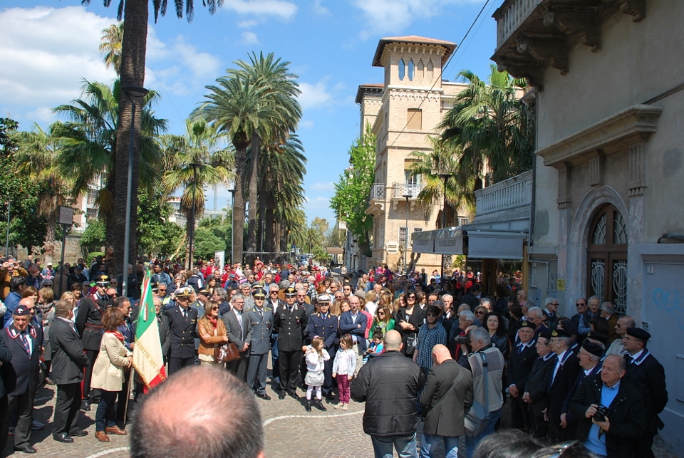 SAN BENEDETTO DEL TRONTO – A 70 anni dalla Liberazione di San Benedetto del Tronto, con una riflessione sulla storia della Resistenza locale e in particolare sulle figure degli uomini e delle donne che persero la vita per la libertà, questa mattina, venerdì 25 aprile, in largo Onorati, si è celebrato l’Anniversario della Alla cerimonia istituzionale hanno preso parte autorità civili e militari cittadine, provinciali e regionali e dei Comuni del comprensorio (Ripatransone, Monteprandone, Grottammare, Cupra Marittima), le associazioni degli ex combattenti e d’arma, l’Anpi e tantissimi cittadini.