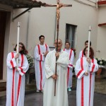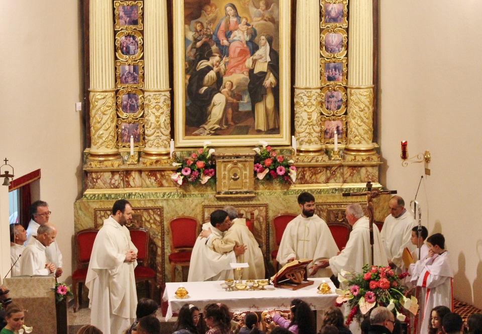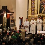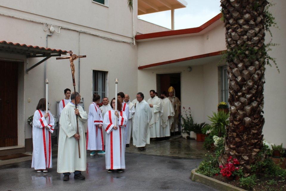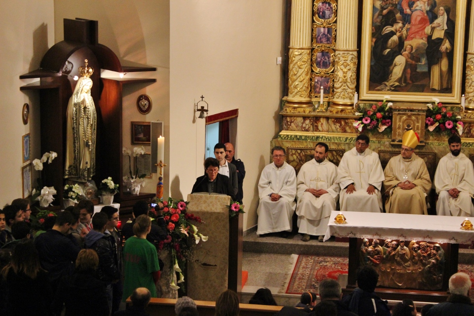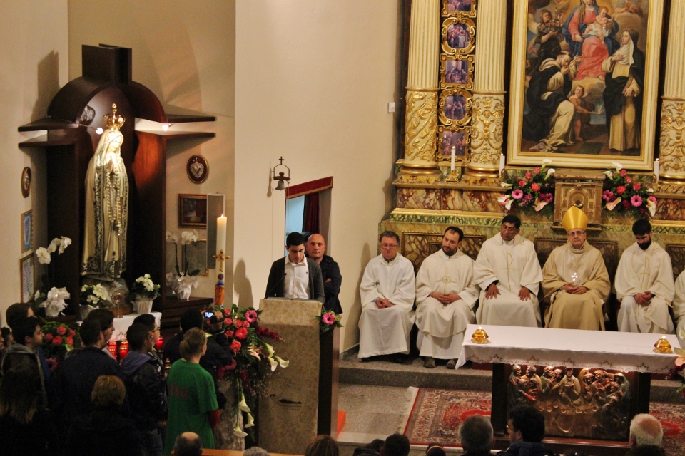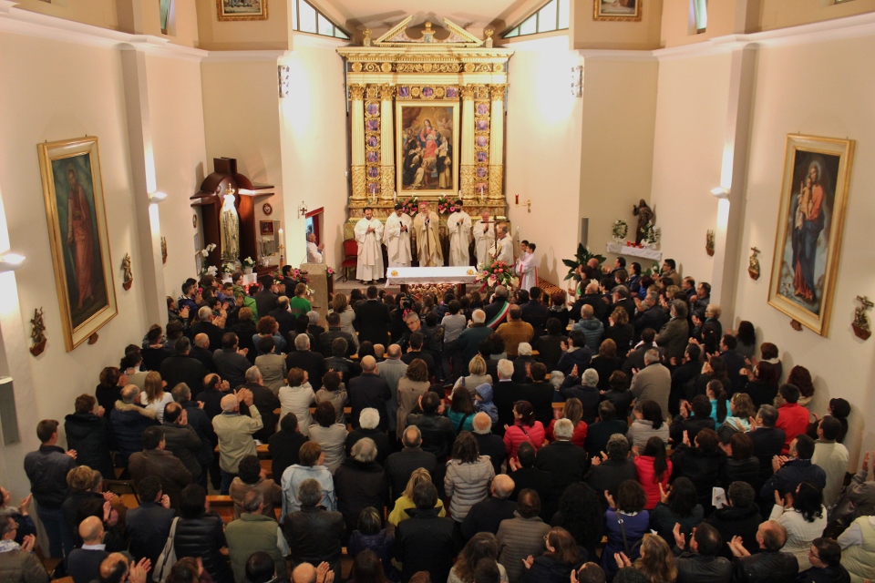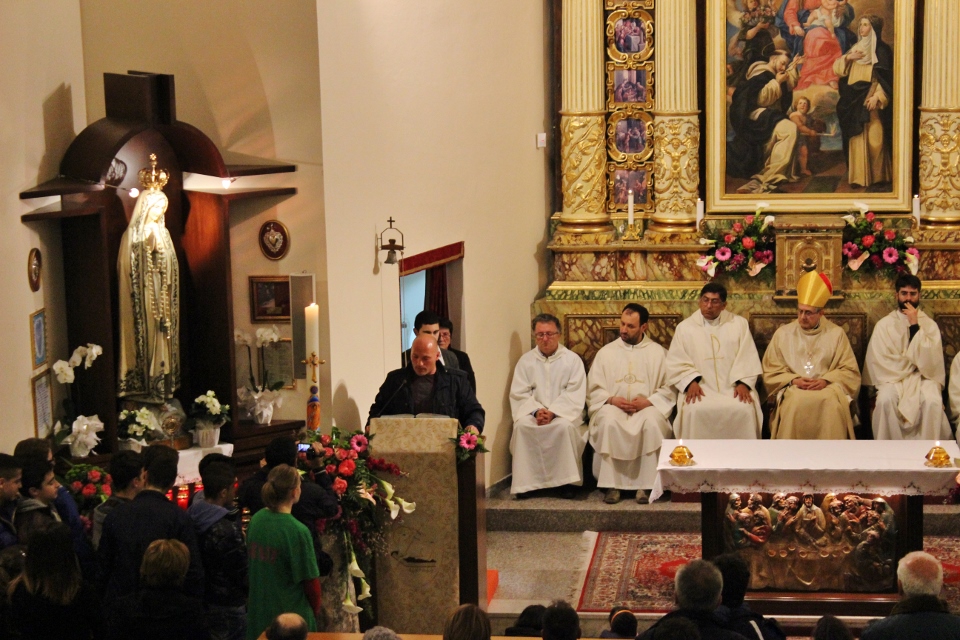 La seconda strada fondamentale è come hanno fatto i due apostoli: “Resta con noi Signore perché si fa sera”, vogliamo celebrare insieme con te, vogliamo celebrare l’eucarestia insieme con te, la parola e la celebrazione, le due strade che ci mantengono la comunità del Cristo Risorto, che ci mantengono uniti e che fanno una comunità nel Signore. Questo è l’augurio che faccio a voi carissimi fedeli della Parrocchia Madonna di Fatima, siete una bella comunità, avete fatto un cammino grande in questi 50 anni, se tenete queste due strade questo sarà un cammino con il Signore, perché è questo che il Signore vuole, fare di noi una comunità nel Suo nome e nelle sue grazie.”