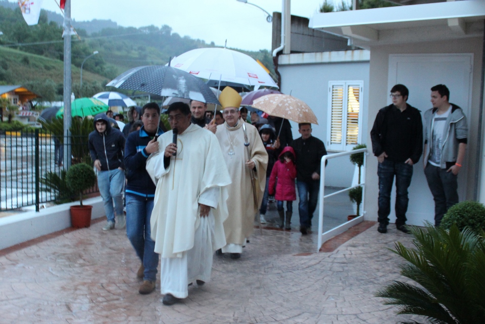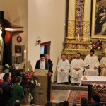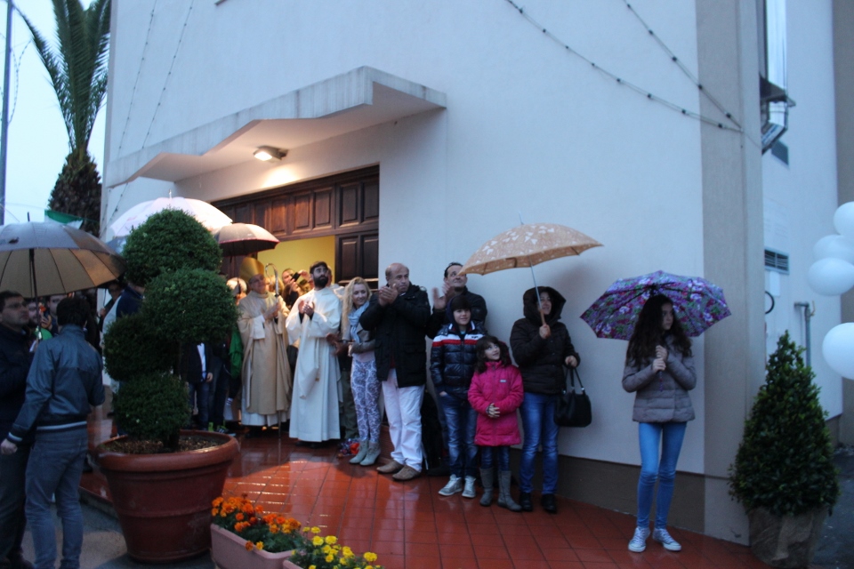 Padre Luis al termine della celebrazione ha dichiarato “Ringrazio Il Vescovo Carlo per essere venuto nella nostra Parrocchia, ringrazio tutti voi che siete qui, ringrazio quanti hanno contribuito per la ristrutturazione delle sale, ringrazio in particolar modo i sacerdoti che ci sono stati vicino nel momento della prova. La nostra comunità si è unita in questo mistero della morte. Onoriamo adesso Maria con il nostro coro”, con il canto Salve Regina.