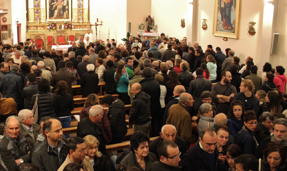 Pian piano la Chiesa si è andata sempre più gremendo, fino a quando per mancanza di spazio, diversi fedeli hanno potuto trovare posto presso il tendone allestito vicino alla parrocchia.