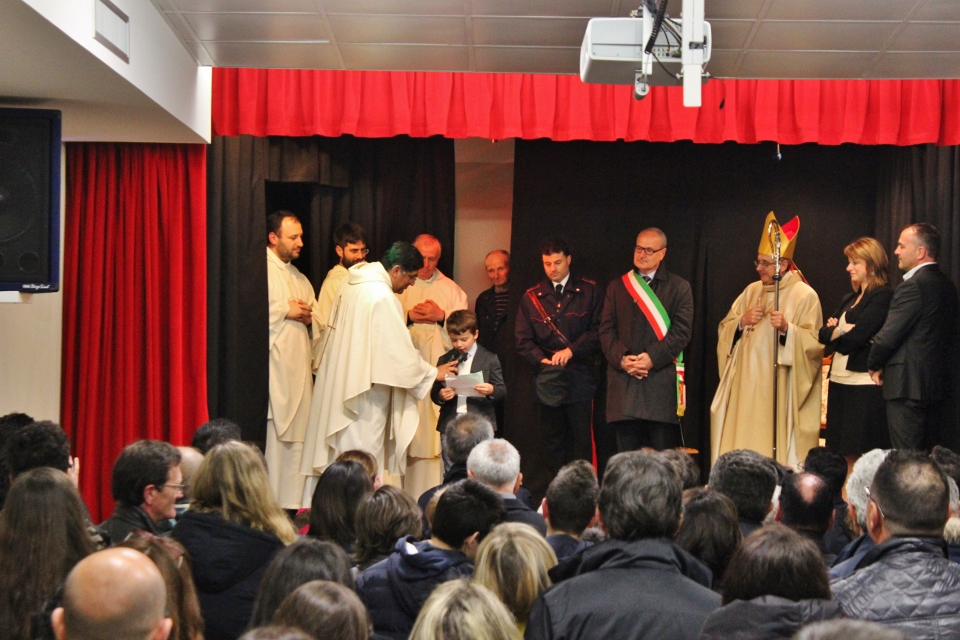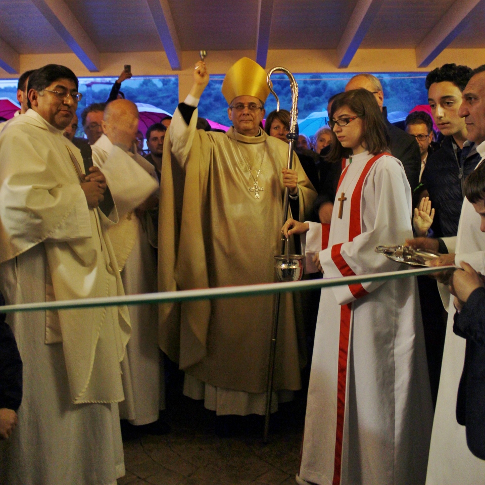 RIPATRANSONE – Sabato 3 Maggio si è tenuta presso la Chiesa Madonna di Fatima la celebrazione Eucaristica presieduta dal nostro Vescovo Carlo Bresciani in occasione della benedizione della colonna votiva a Cristo Redentore e aìdella riapertura della sala “Don Ubaldo Grossi” dopo i lavori di ristrutturazione in memoria di Luca Carboni.