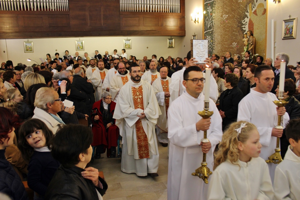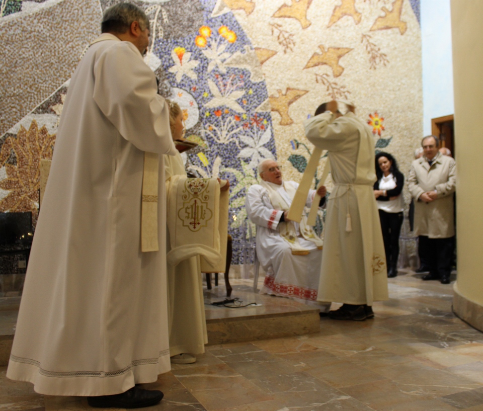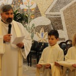 All’inizio della celebrazione il parroco, Don Marco Digiosia ha letto le parole del Vescovo Carlo Bresciani: “Carissimo fra Giuseppe Giovannini, un caro saluto nel giorno della tua ordinazione sacerdotale. Gioisco con te per questo grande dono del Signore alla Chiesa e al tuo ordine religioso. Mi unisco alla comunità tutta invocando dal Signore le sue benedizioni e la grazia che accompagna nel cammino affinchè la donazione di oggi diventi tutta la vita donata per sempre al ministero per il bene della Chiesa, cioè del popolo di Dio.