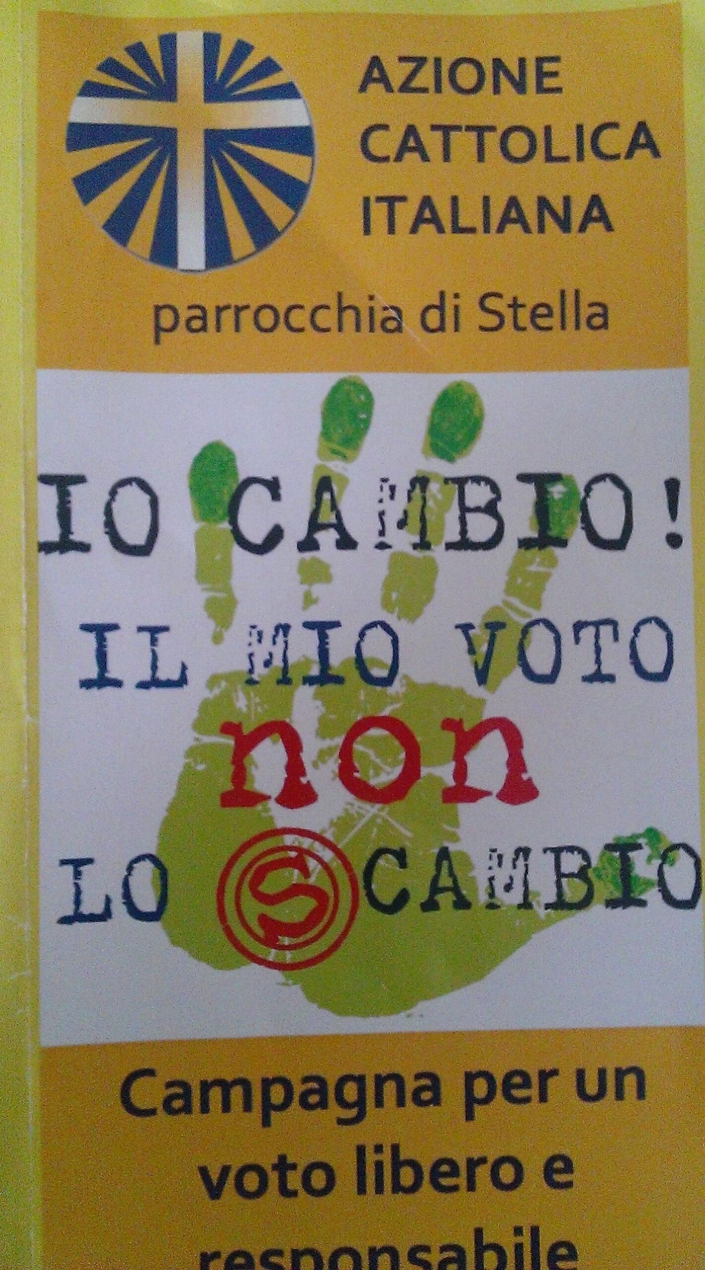 In occasione delle votazioni amministrative e anche europee, i cittadini si interrogano. Il cittadino elettore è chiamato a esercitare il diritto di voto come espressione massima di una democrazia, ma come? Questo è ciò che vogliono diffondere con un’iniziativa, l’azione cattolica della parrocchia di Stella, che propone un Codice Etico Dell’Elettore. Natao da un’idea dell’AC della diocesi di Molfetta-Ruvo-Giovinazzo-Terlizzi “Io Cambio! Il mio voto non lo scambio”, il codice etico per gli elettori promuove un voto “libero” e responsabile, un voto che segua la voce della coscienza e non altre motivazioni di diversa natura. Anche mons. Galatino ha tuonato contro il collateralismo con i candidati, che ha tante forme.