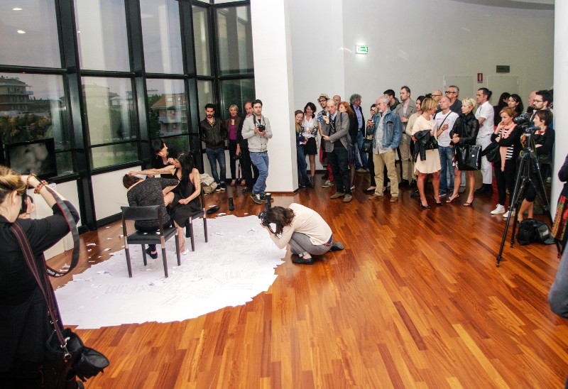 Le inaugurazioni hanno visto un bell’afflusso di pubblico (straordinario nel caso di san Benedetto del Tronto) e la partecipazione delle autorità. A Cupra Marittima l’apertura di Sublime, collettiva curata da Rebecca Delmenico, è stata anche l’occasione per inaugurare i nuovi spazi appena recuperati dagli ex spogliatoi della Stazione Ferroviaria. A Monteprandone la personale UOMO E (È) TEMPIO, curata da Loretta Morelli, offre, all’interno di Palazzo Parissi, una retrospettiva dell’opera di Roberto Cicchinè. All’interno dello Showroom di Ciù Ciù, ad Offida Alessandra Morelli cura Libellule, collettiva che si affaccia sulla meravigliosa Piazza del Popolo. Si arriva infine al PalaRiviera di San Benedetto del Tronto dove sono ospitate tre sezioni: Call me Ishmael a cura di Nikla Cingolani, VEDUTE, VEDERE E SENTIRE- Linguaggi dell’arte contemporanea a confronto a cura di Maria Letizia Paiato e PORCOSPINI VEGETALI a cura di Cristina Petrelli. In un’altra ala del PalaRiviera ci sono le opere realizzate dai ragazzi degli ISC di Grottammare, Monteprandone e San Benedetto del Tronto, testimonianza dell’inizio di un percorso che Marche Centro d’Arte e le scuole vogliono fare insieme. L’inaugurazione al Palariviera è stata presenziata dall’assessore alla cultura di San Benedetto Margherita Sorge. Il giorno dell’inaugurazione al PalaRiviera è stato poi scandito da un evento speciale, la presentazione nell’Auditorium del video L’esposizione del lenzuolo di Maria Angela Capossela e Liviana Davì, all’incontro ha partecipato la signora Capossela che è stata introdotta dalla critica Cristina Petrelli. Ci sono state poi due performance realizzate da Solidea Ruggiero e da Mandra Cerrone.