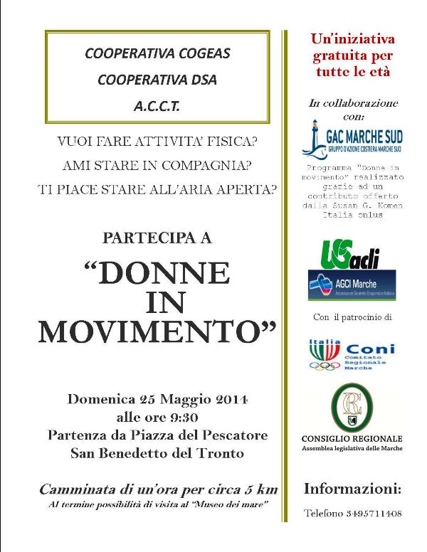 Con partenza alle ore 9,30, in piazza del Pescatore, e grazie alla collaborazione tra l’Assessorato alla mobilità e la cooperativa Cogeas di Grottammare, l’U.S. Acli Marche, l’Associazione generale delle cooperative italiana (Agci) Marche, e con il sostegno del Gruppo d’azione Costiera Marche Sud è infatti in programma una iniziativa di valorizzazione del territorio attraverso l’unione tra una sana attività fisica, quale una camminata di circa 5 chilometri, con partenza ed arrivo, dopo un percorso che valorizzerà il mare.