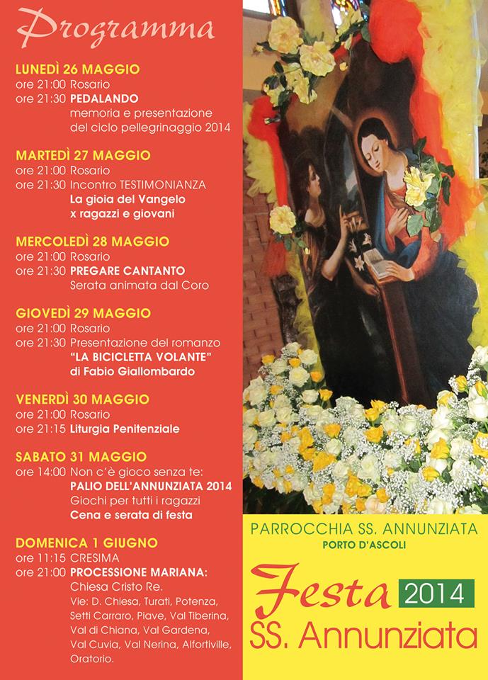 PORTO D’ASCOLI – è iniziata ieri con il Santo Rosario e con la serata in preparazione al “ciclo pellegrinaggio 2014” la Festa per la SS. Annunziata presso la parrocchia di Don Gianni Croci di Porto D’ascoli.