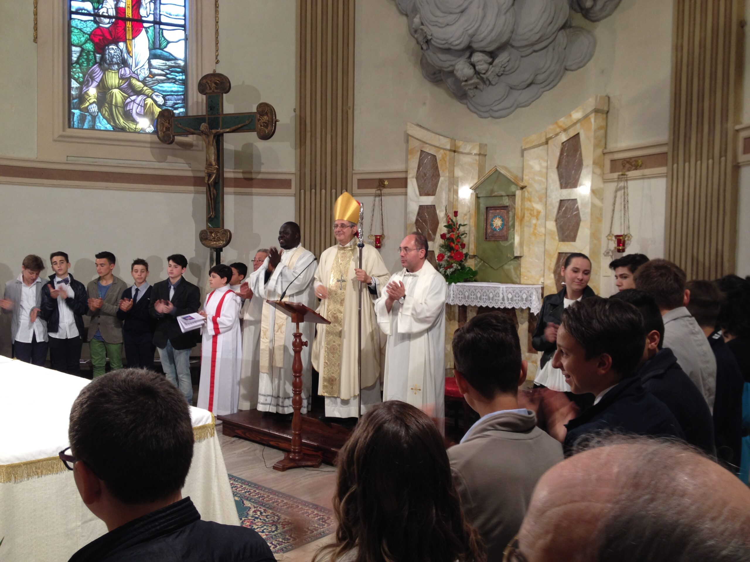 Atmosfera proseguita anche durante e dopo la celebrazione , rafforzata dalle parole del Vescovo ai ragazzi durante l’omelia ,invitandoli a non essere e non sentirsi soli ma cercando sempre di essere in comunione con il prossimo perché ’ e’ l’unica strada per essere comunità e chiesa ma anche valore aggiunto per la società civile. Il Sindaco Domenico Annibali ha portato il suo saluto: