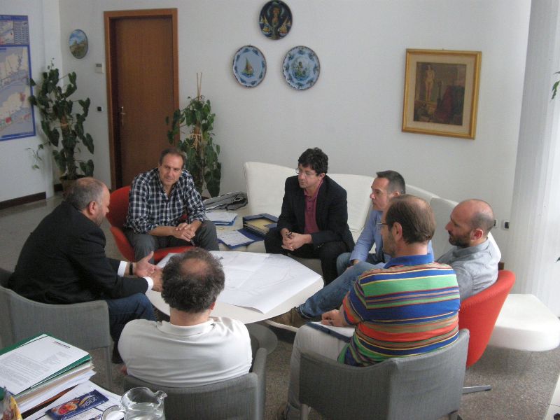 SAN BENEDETTO DEL TRONTO – Su richiesta del Comune, mercoledì 28 maggio il sindaco Giovanni Gaspari e l’assessore all’ambiente Paolo Canducci, insieme agli ingegneri del Settore opere pubbliche Enrico Offidani e Nicola Antolini, hanno incontrato i tecnici del Genio Civile Opere Marittime di Ancona per fare il punto sullo stato di avanzamento dei lavori per l’inertizzazione della cassa di colmata, lo spazio situato a nord del bacino portuale riempito di sabbia proveniente dalle escavazioni dei fondali marini.
