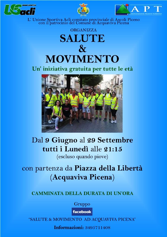 Per ulteriori informazioni sulla iniziativa ci si può rivolgere al seguente numero telefonico 3495711408 oppure sul gruppo facebook “Salute & Movimento ad Acquaviva Picena”. Non occorre effettuare una preiscrizione, basta presentarsi sul luogo di partenza entro le ore 21.