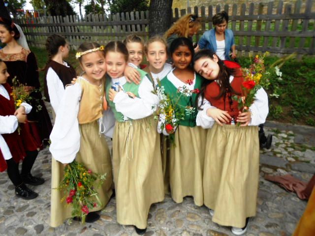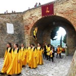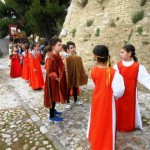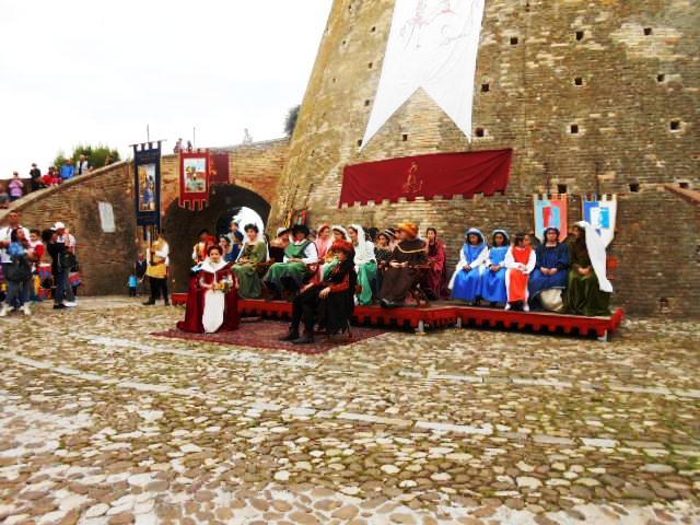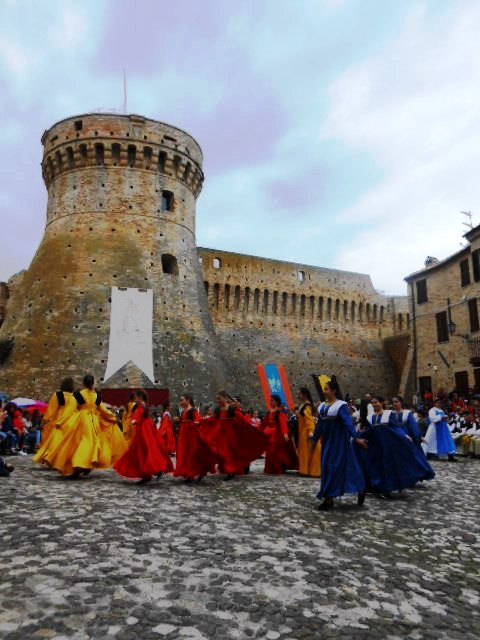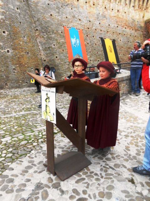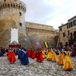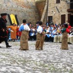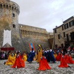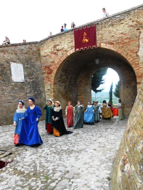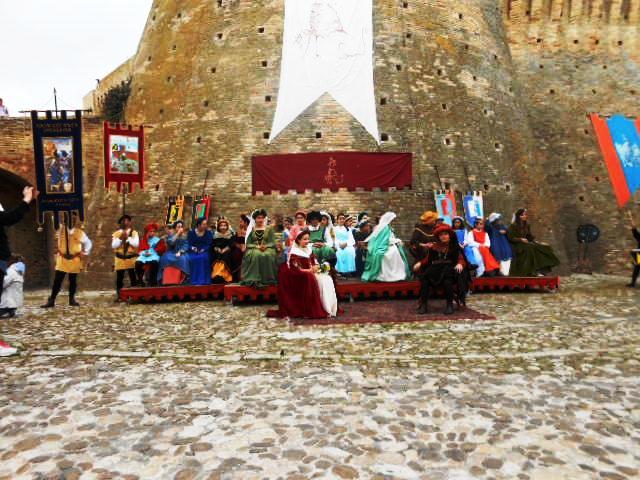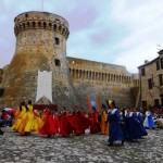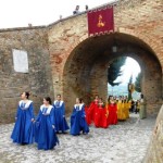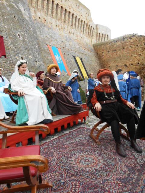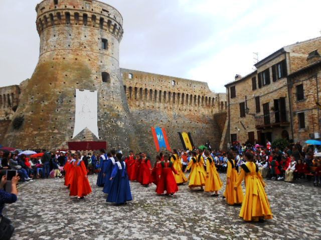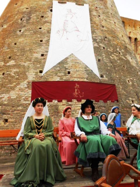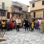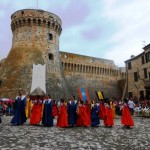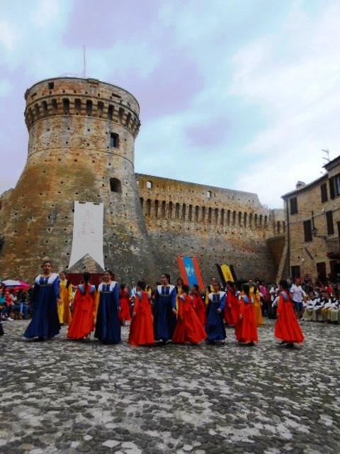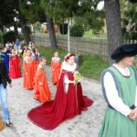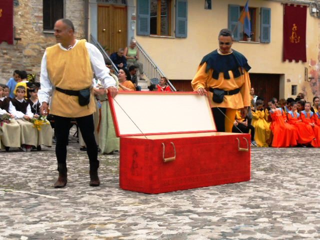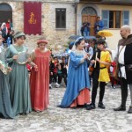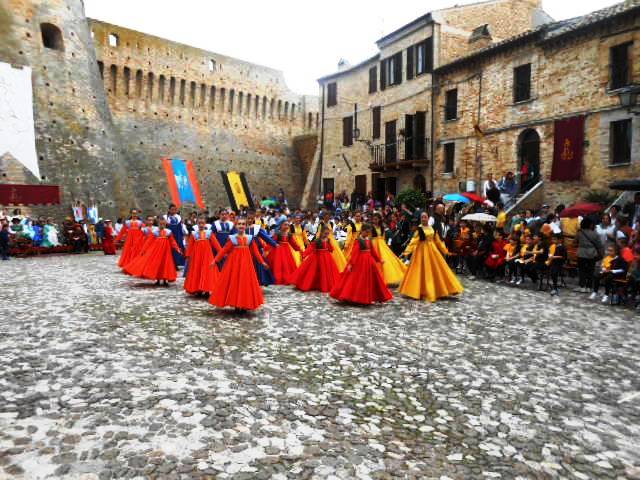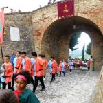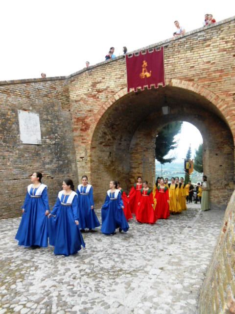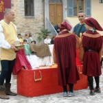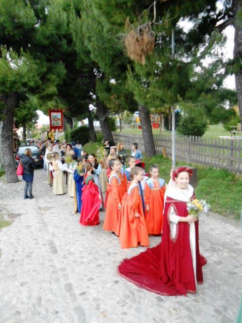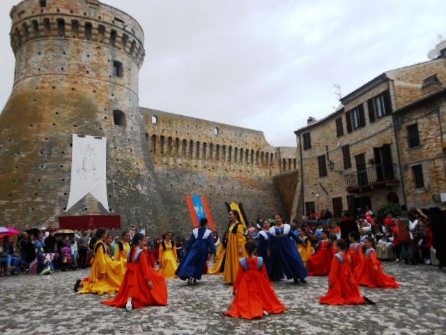 ACQUAVIVA PICENA – Sabato 31 maggio si è tenuta in piazza del Forte il Palio dei Bambini animato dagli scolari delle classi IV e V di Monsampolo del T. e di tutte le classi di Acquaviva Picena. Piazza del Forte si è riempita dei colori dei costumi dei bambini e dei 4 rioni del Palio: giallo e nero per il rione Civetta, arancione e celeste per il rione Aquila, verde e rosso per il rione Falco e bianco e celeste per il rione Picchio, quest’ultimo rappresentato dalla scuola di Monsampolo del Tronto che rappresentava anche il Gruppo dei Brunforte con Mattioli Alessio nei panni di Rinaldo dei Brunforte, Traini Denni nei panni del Duca Bonconte dei Brunforte, Impiccini Asia nei panni della Duchessa Maria dei Brunforte e Malavolta Andrea nei panni del Notaio dei Brunforte; mentre il gruppo degli Acquaviva è stato rappresentato dalla scuola di Acquaviva Picena, con Zomparelli Annalisa nei panni di Forasteria, Ciotti Mariano nei panni del Duca Rinaldo degli Acquaviva, Troiani Chiara nei panni della Duchessa Elena degli Acquaviva e Zappasodi Andrea nei panni del Notaio degli Acquaviva.