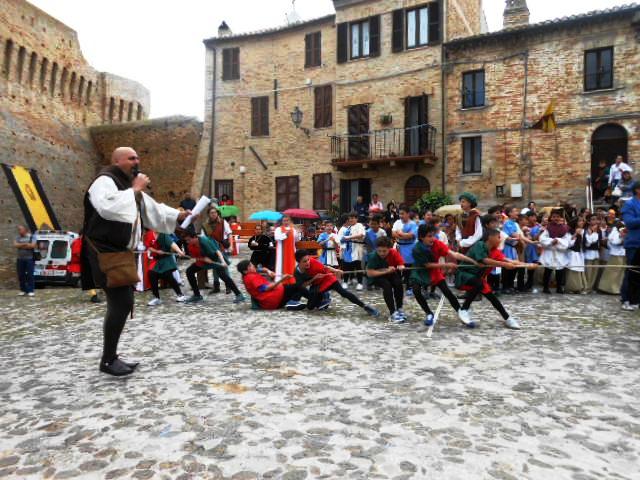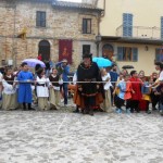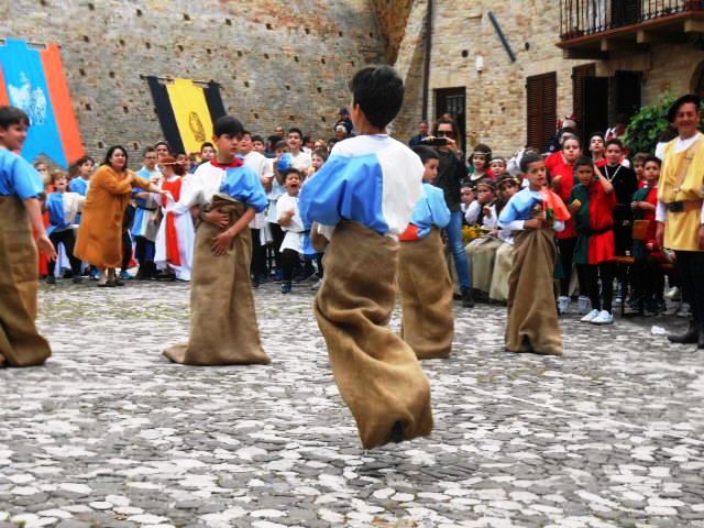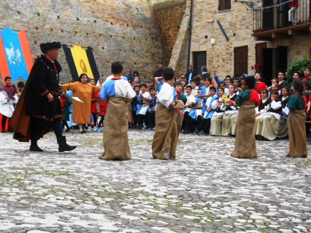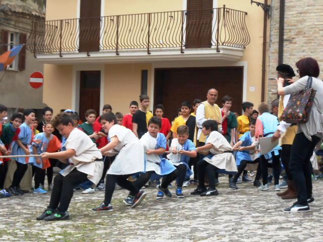 La contesa, da parte dei quattro rioni, del drappo del Palio dei Bambini 2014, disegnato dall’alunna Cameli Francesca, ha visto come vincitore il rione Picchio. Quattro le sfide al termine delle quali il rione bianco celeste è risultato il vincitore: il tiro alle palle, la corsa con i sacchi, il tiro alla fune e il tiro degli anelli.