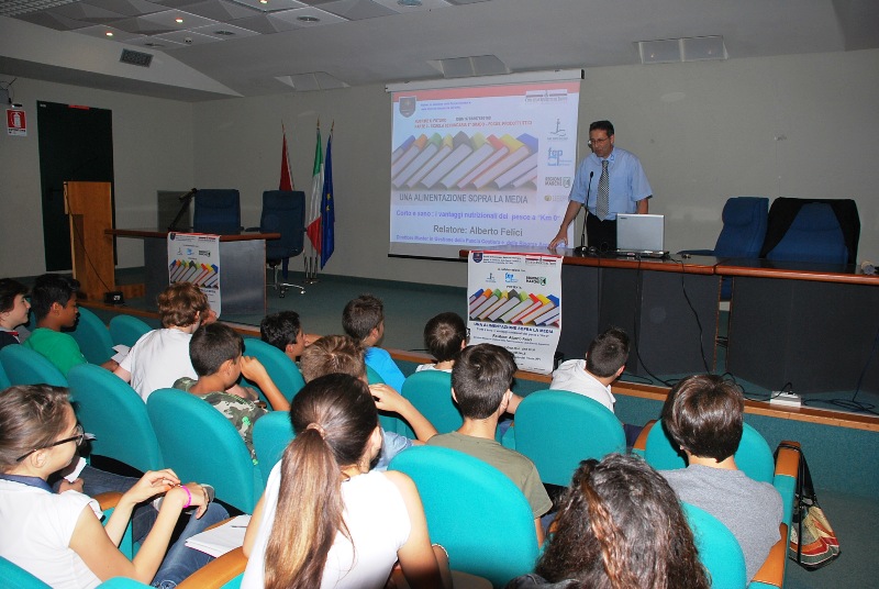 L’incontro era rivolto agli studenti delle scuole secondarie di primo grado e metteva in risalto la caratteristiche organolettiche dei prodotti ittici dell’Adriatico, la stagionalità e il valore aggiunto che essi possono dare ad una corretta alimentazione in età pediatrica.