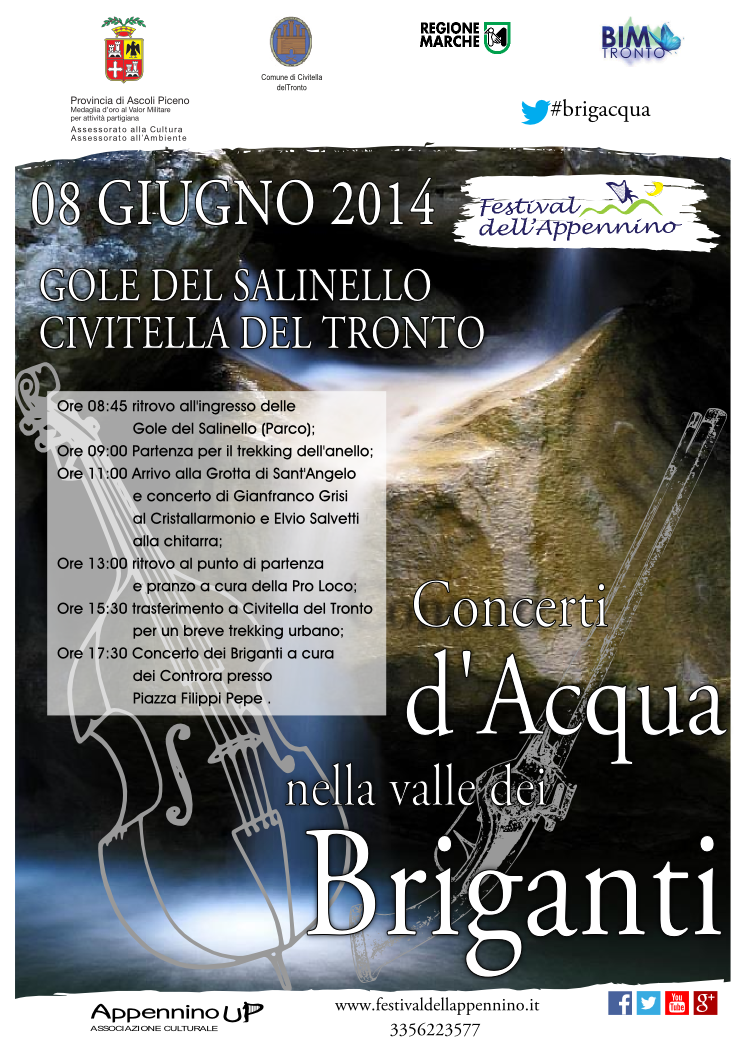 “Concerti d’acqua nella valle dei briganti”: questo il titolo scelto per una giornata che si prospetta particolarmente emozionante. Il ritrovo è fissato per le ore 08:45 all’ingresso delle Gole del Salinello nel Parco Nazionale del Gran Sasso e dei Monti della Laga da dove avrà inizio l’escursione accompagnati dalla guida alpina del Festival. Il percorso verrà completato in circa tre ore e mezza, richiede un minimo di allenamento ed è classificato di media difficoltà.