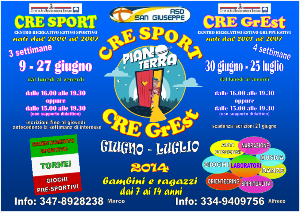 – dal 9 al 27 giugno (3 settimane) il CRES (Centro Ricreativo Estivo Sportivo)