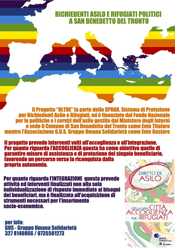 L’evento si inserisce nell’ambito delle attività del Progetto “SPRAR Oltre”, finanziato dal Ministero degli Interni, di cui è titolare il Comune di San Benedetto del Tronto e gestito dal G.U.S. Il progetto è rivolto all’accoglienza e all’integrazione di richiedenti e titolari di protezione internazionale.