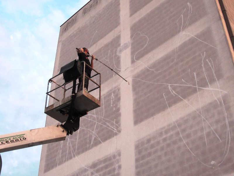 Questo “grande muro” (come lo chiamano in gergo gli street artist) sarà un’opera alta 17 metri e larga 10 che verrà realizzata in cinque giorni con una tecnica pittorica innovativa che si chiama “second skin”: come una seconda pelle, infatti, l’opera, realizzata su una speciale superficie staccabile, con le intemperie lentamente si decomporrà per lasciare spazio alla seconda disegnata sull’intonaco. Per avere un’idea dei lavori di Marco Burresi, si può visitare la sua pagina facebook “Zed1” o il sito www.zed1.it.