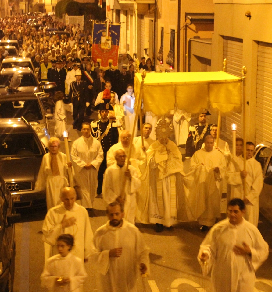 Essa, come è ovvio, si riferisce al corpo del Signore e alla sua presenza reale nell’eucaristia, esattamente in quella eucaristia che questa sera abbiamo portato in processione per le strade della nostra città. “Questo è il mio corpo … questo è il mio sangue”: è parola del Signore sulla quale si fonda la nostra incrollabile fede. Nel suo corpo e nel suo sangue il Signore Gesù continua ad essere realmente presente sotto le forme sacramentali come pane del cammino della nostra vita. Il 750° anniversario del miracolo eucaristico di Bolsena e della istituzione della festa del Corpus Domini, che ricorre quest’anno, ci rimanda a rimeditare questo mistero.