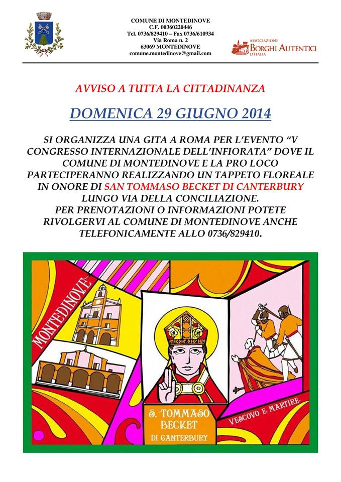 MONTEDINOVE – La capitale del mondo Cattolico e del nostro Paese ospiterà un evento unico nel suo genere. Si tratta del congresso internazionale dell’infiorata, capace di riunire tutti i centri che hanno un legame particolare e che manifestano la loro arte floreale in occasione del Corpus Domini.