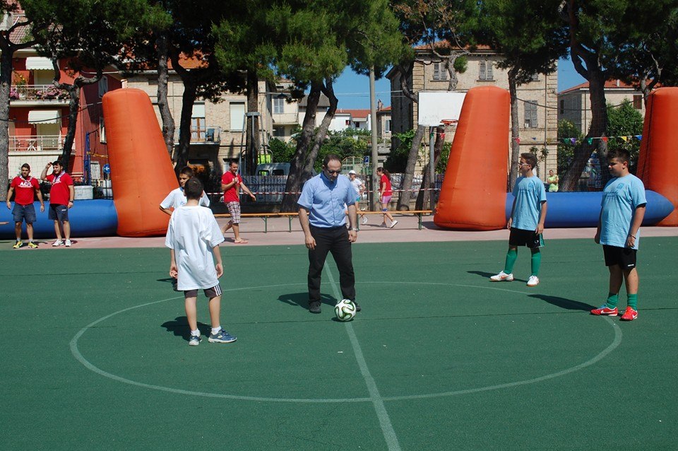Terminate le partite con i ragazzi protagonisti sono entrati in campo i rappresentanti del Comune di Grottammare che si sono “scontrati” con i Rappresentati dell’Azione Cattolica, in campo due squadre formate da maschi e da coraggiose donne che si sono cimentate nel gioco del calcio senza affatto sfigurare. La partita è terminata in parità con due gol da parte di ogni squadra.