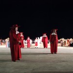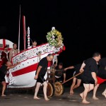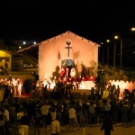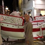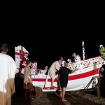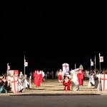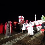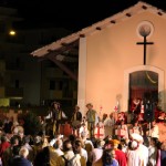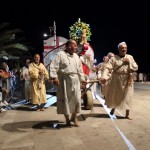 All’imbrunire, già la folla si era radunata sulla spiaggia, poi la pirotecnica “Santa Chiara” ha iniziato a far brillare i fuochi d’artificio per simulare una tempesta e la “cocca” dove si trovava il “papa” ha iniziato ad avvicinarsi fino ad arrivare sulla riva.